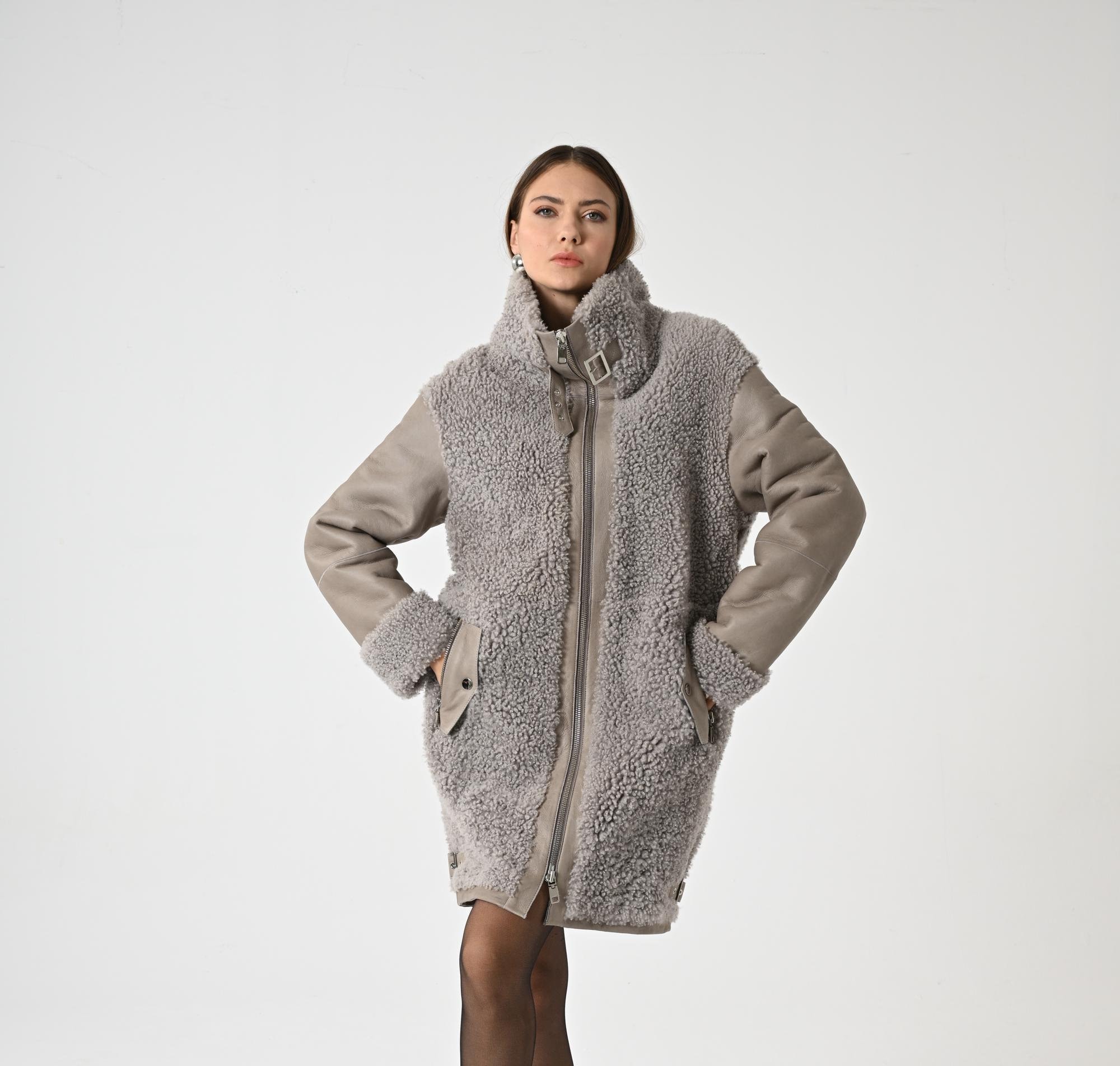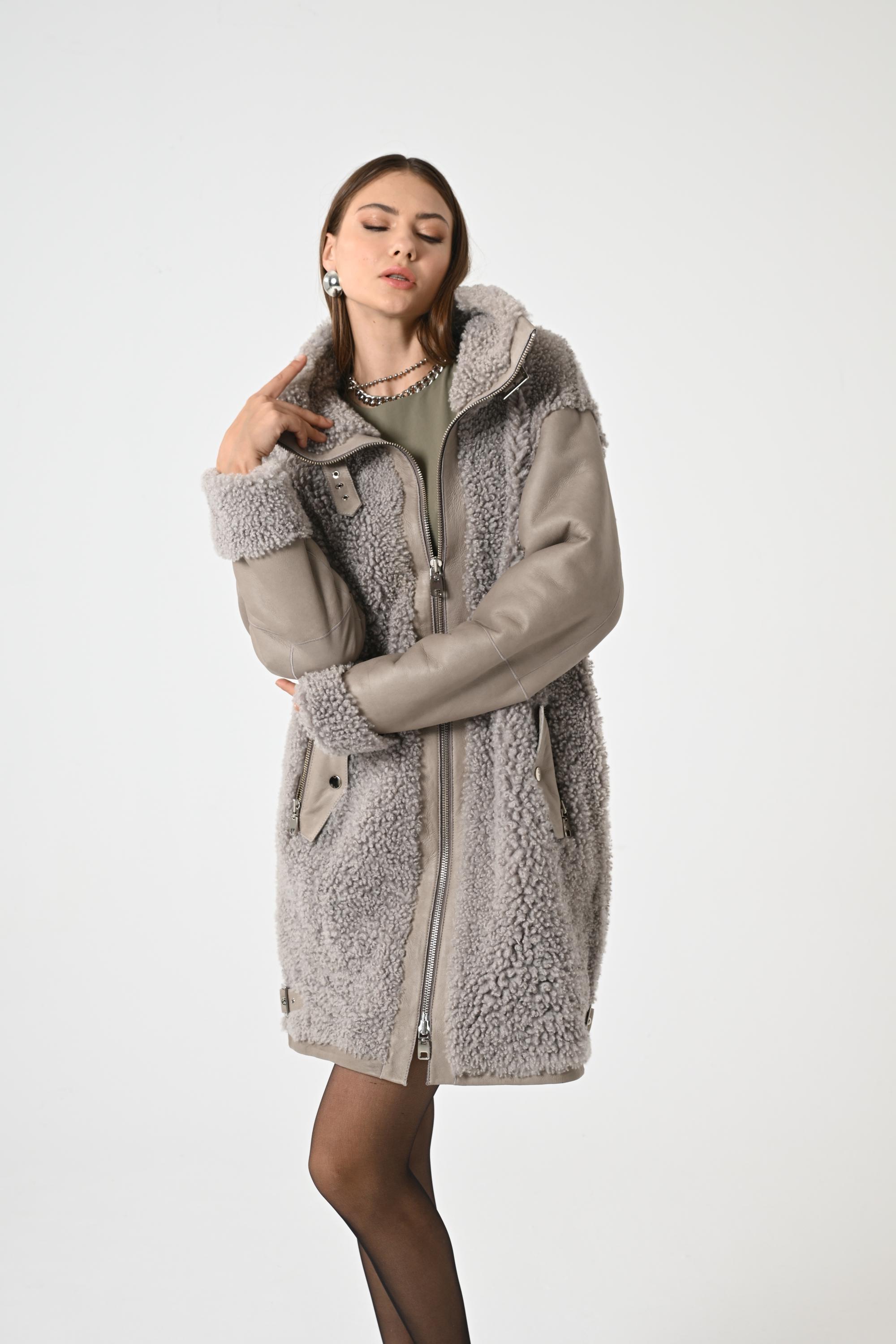 CURLY LACON COAT | Woman Gray Lacon Coat
