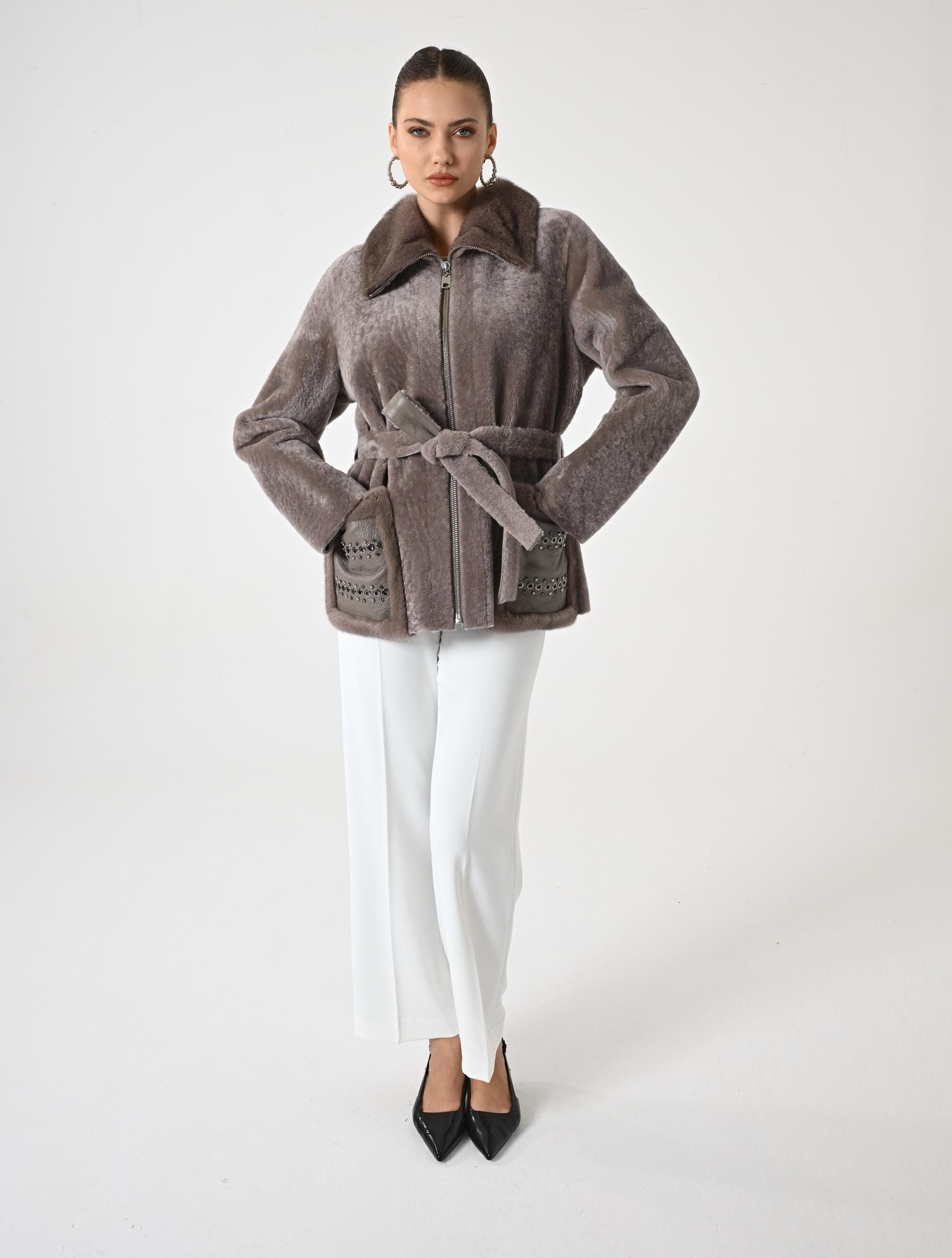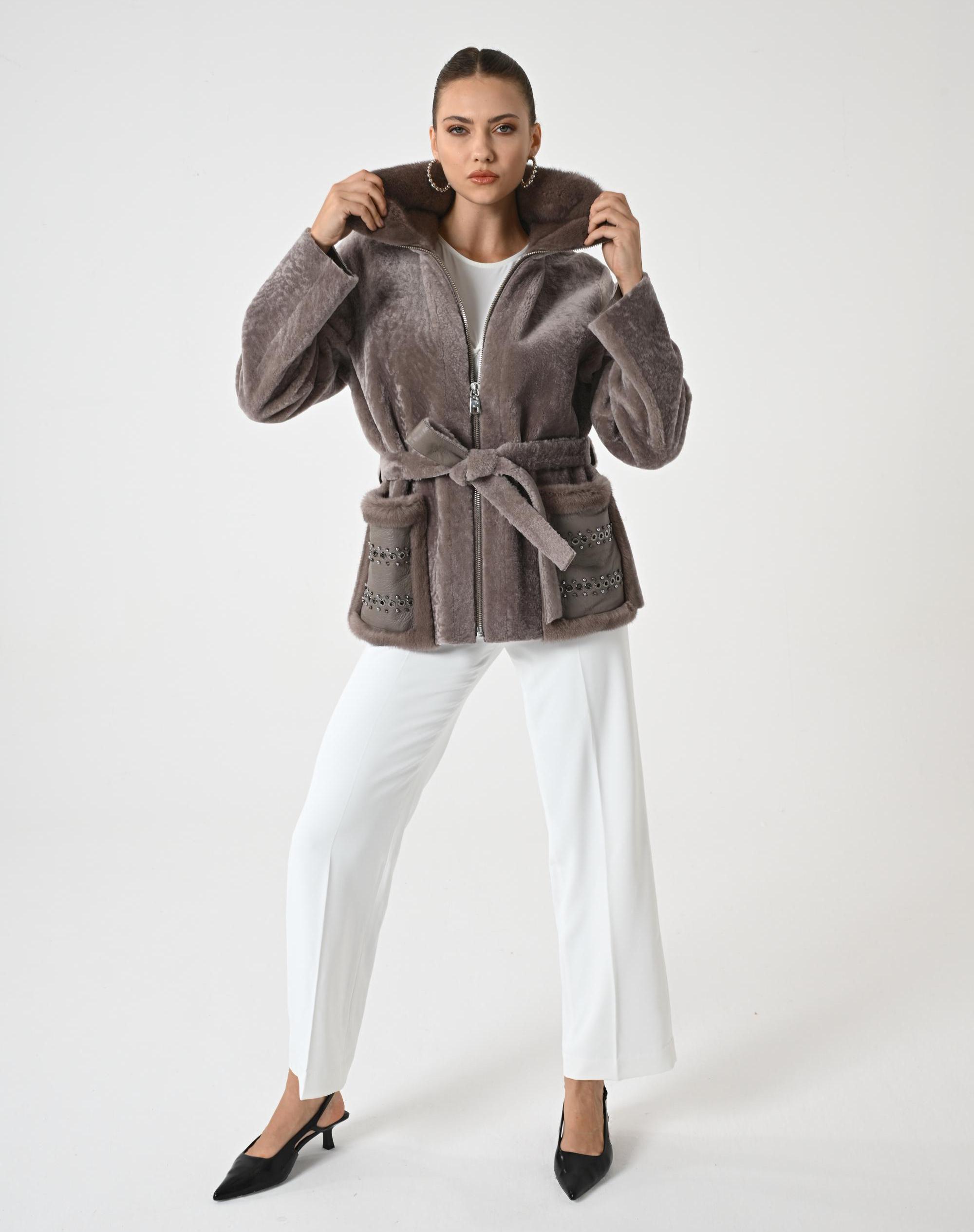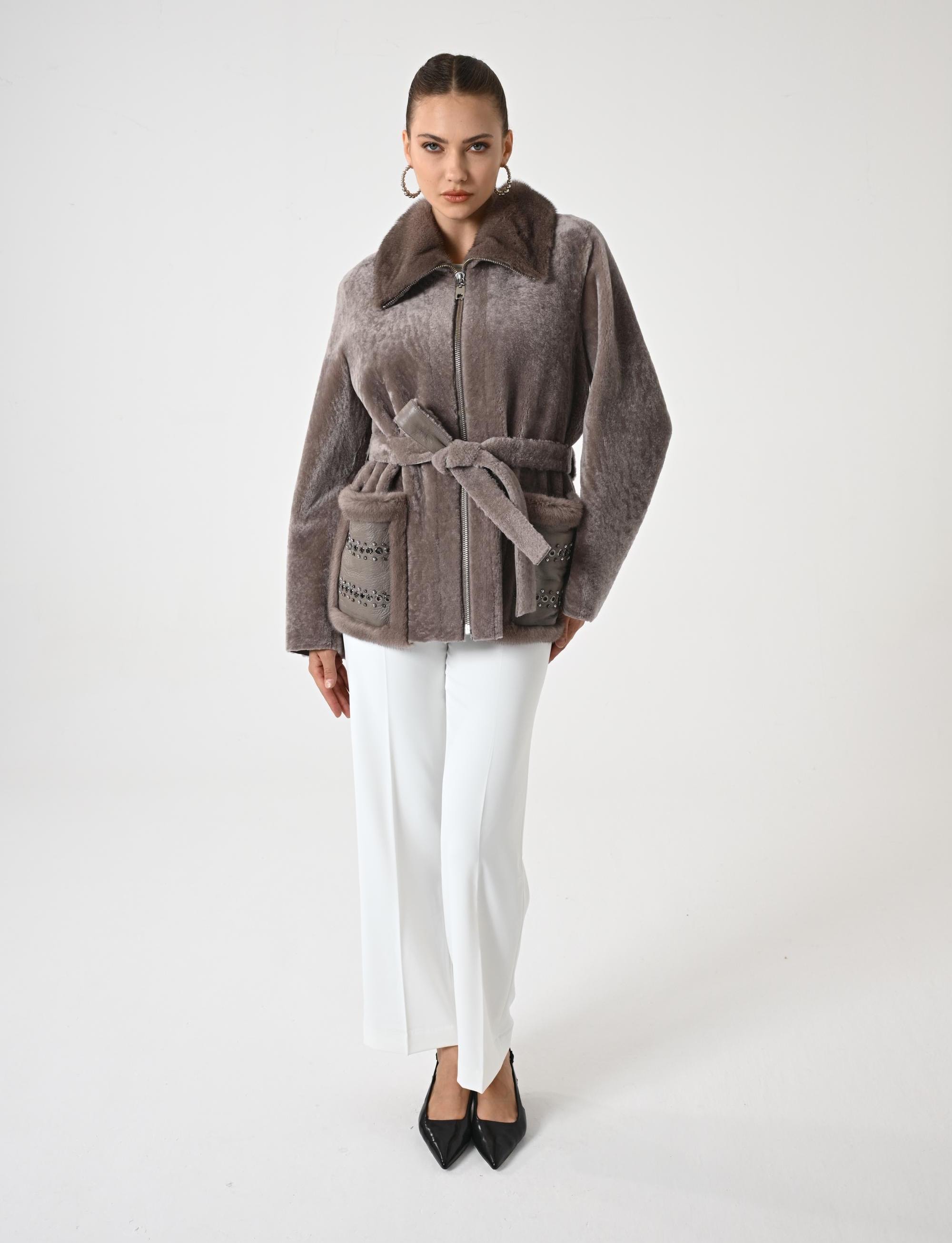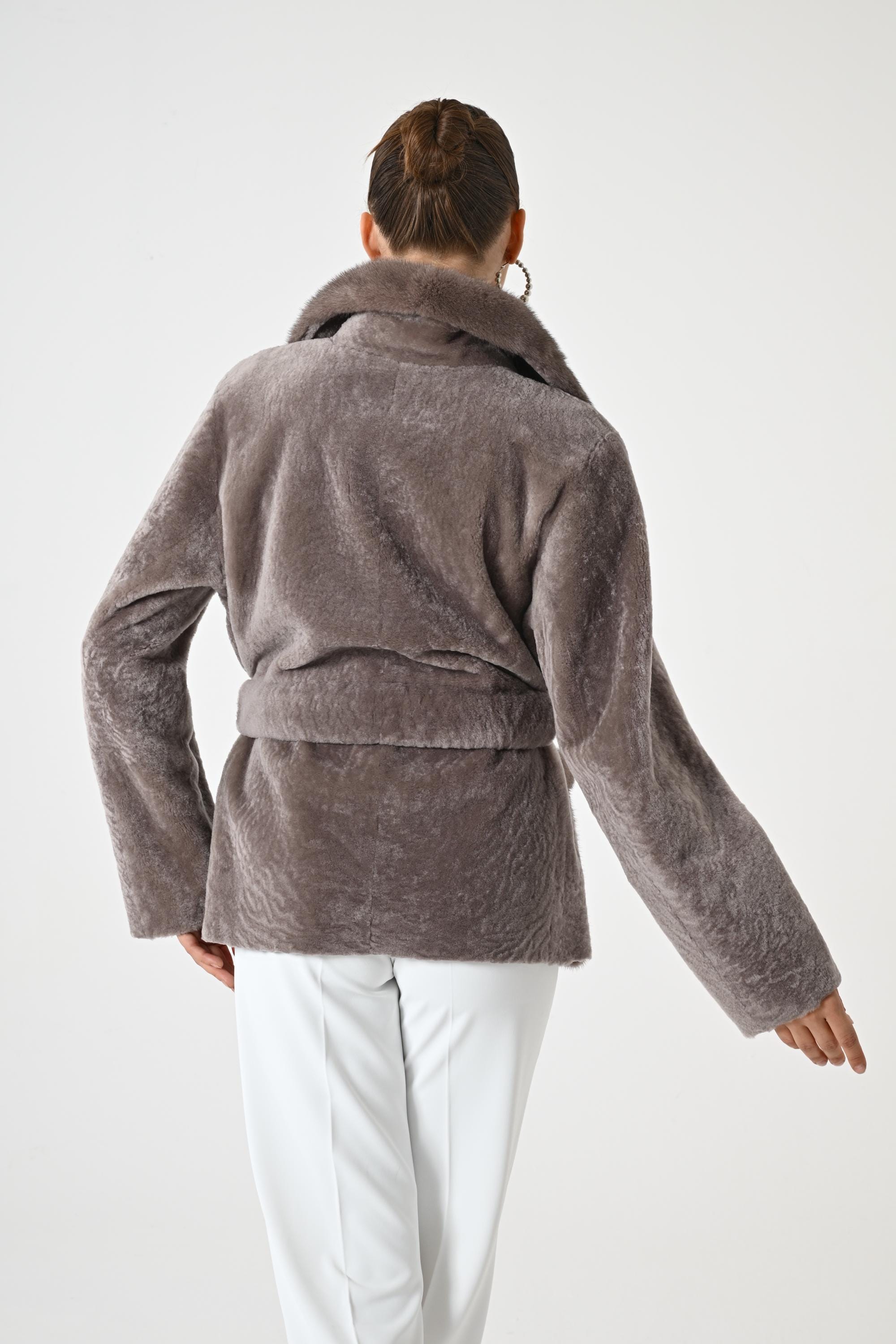 WOMEN COAT | Mink Colour Women Coat | Genuine Mink Fur Trimmed Collared Coat for Women | Winter Coat for Woman | Genuine Astrakhan Lambskin