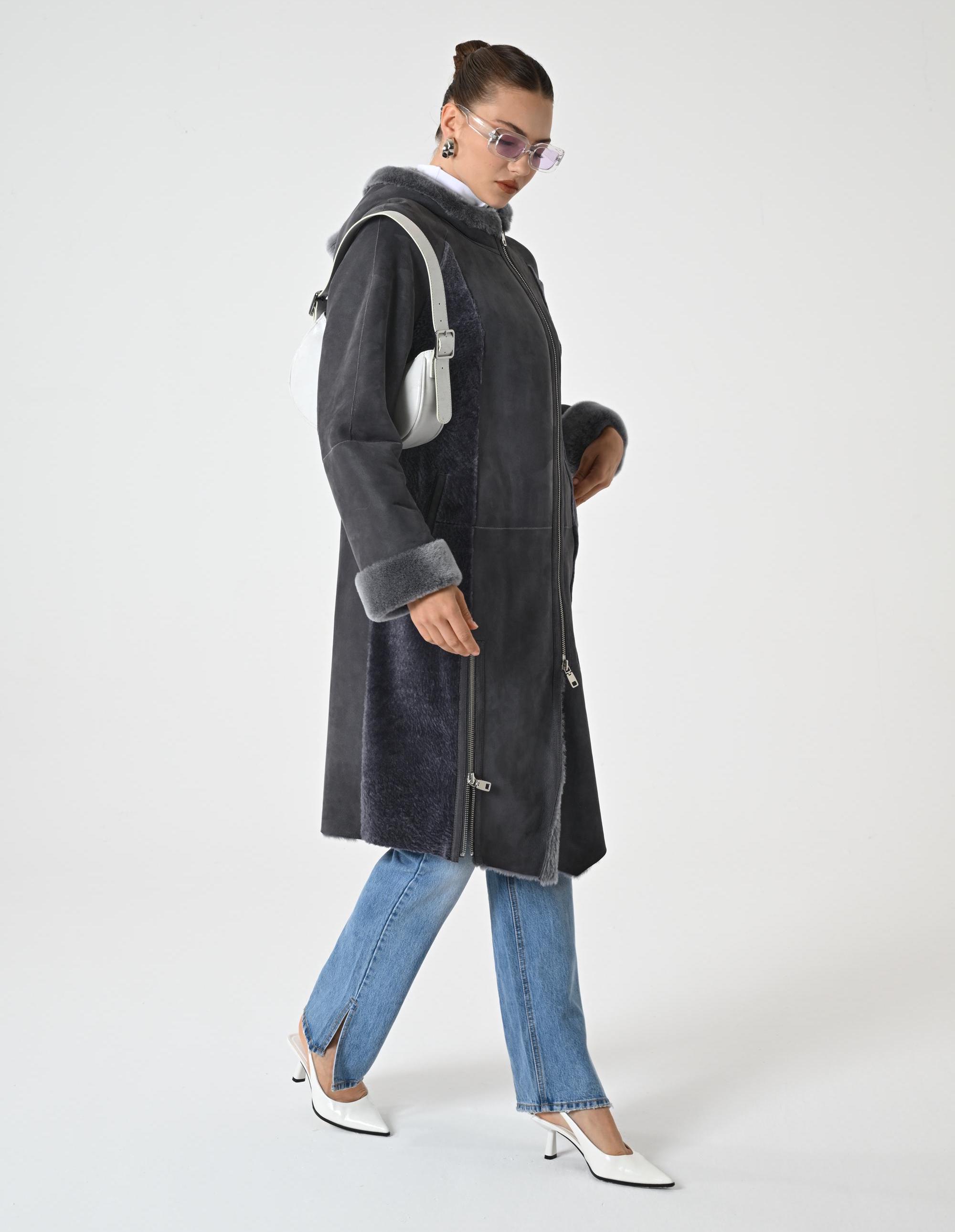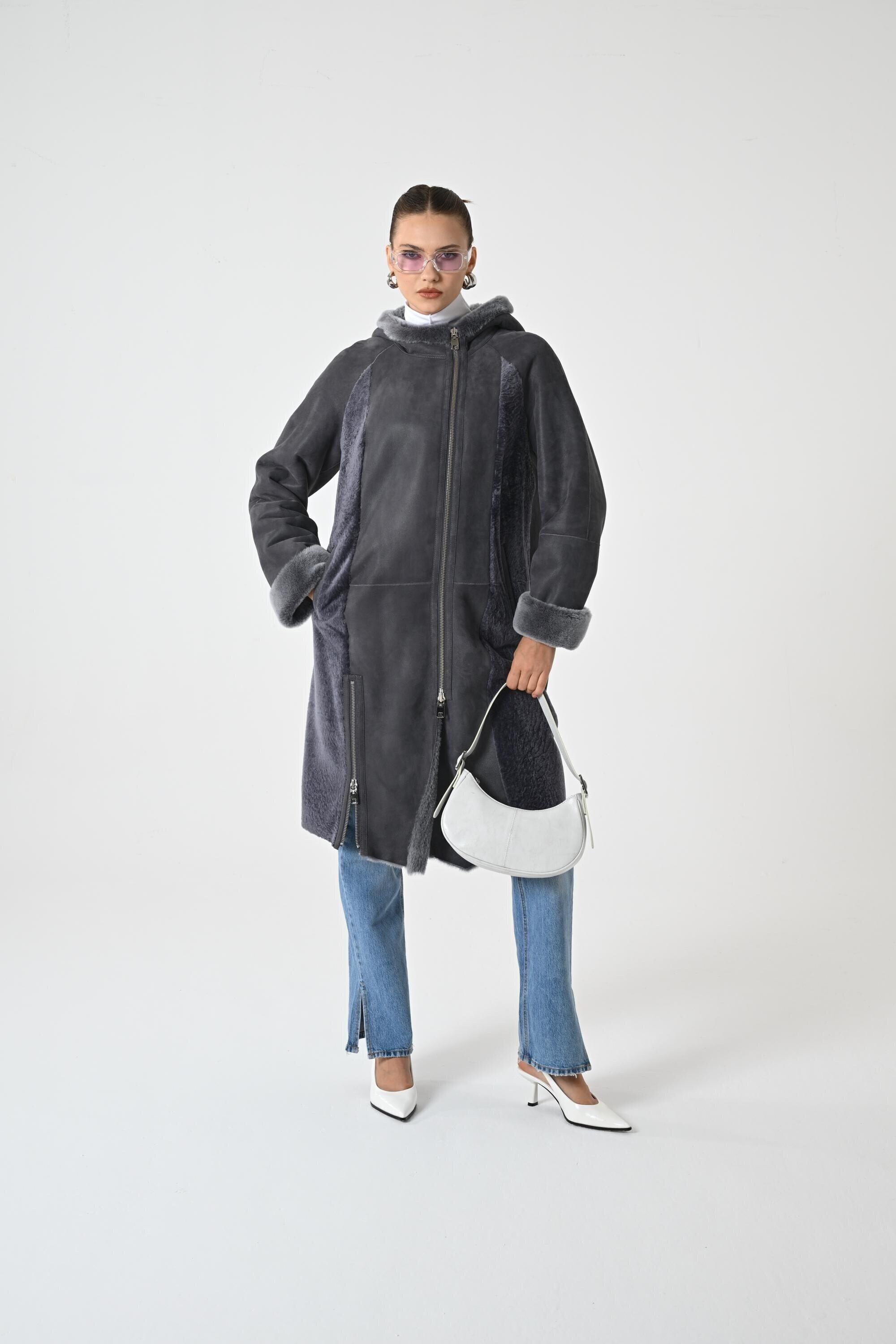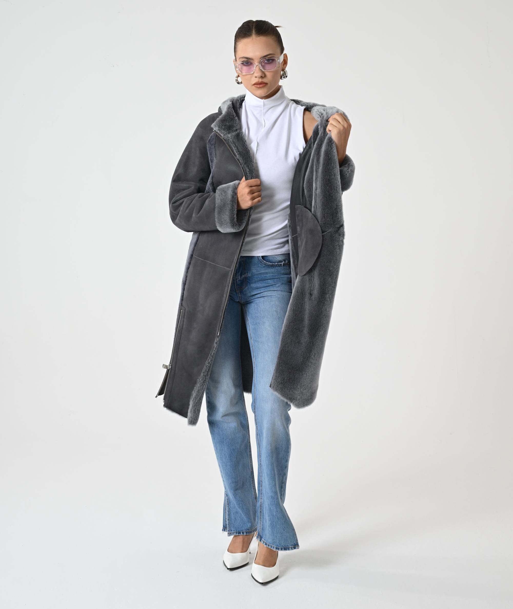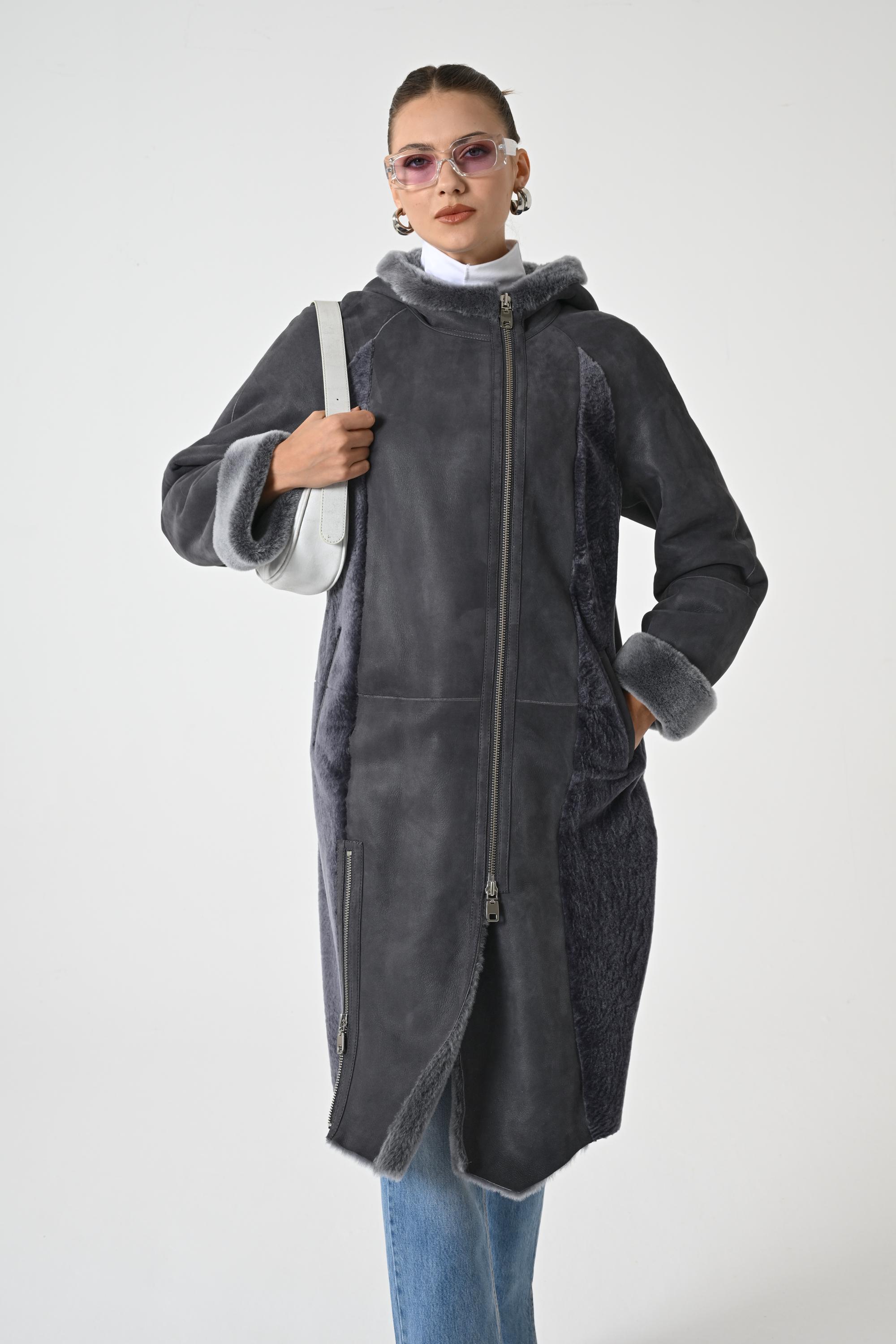 GRAY WOMAN OVERCOAT | Woman Gray Topcoat | Winter Fashion for Women | Cozy Feather Interlining | Woman Warm Long Coat | Hooded Woman Coat
