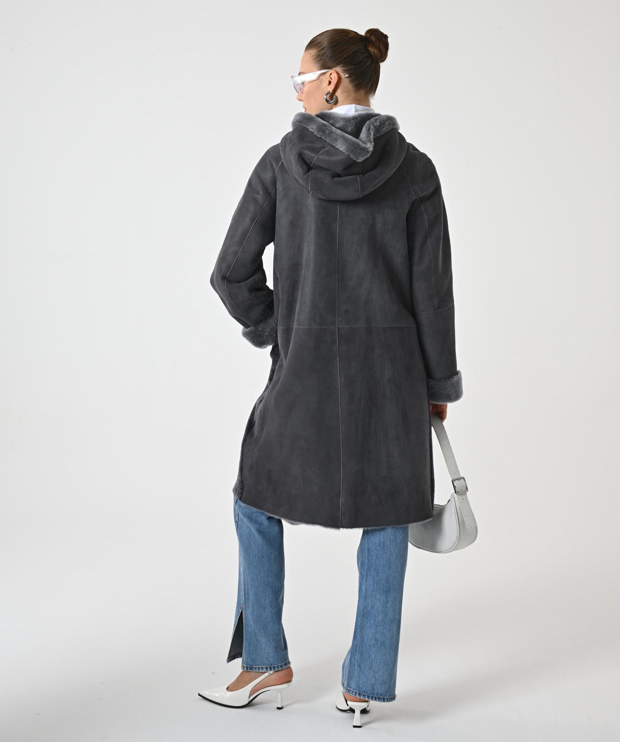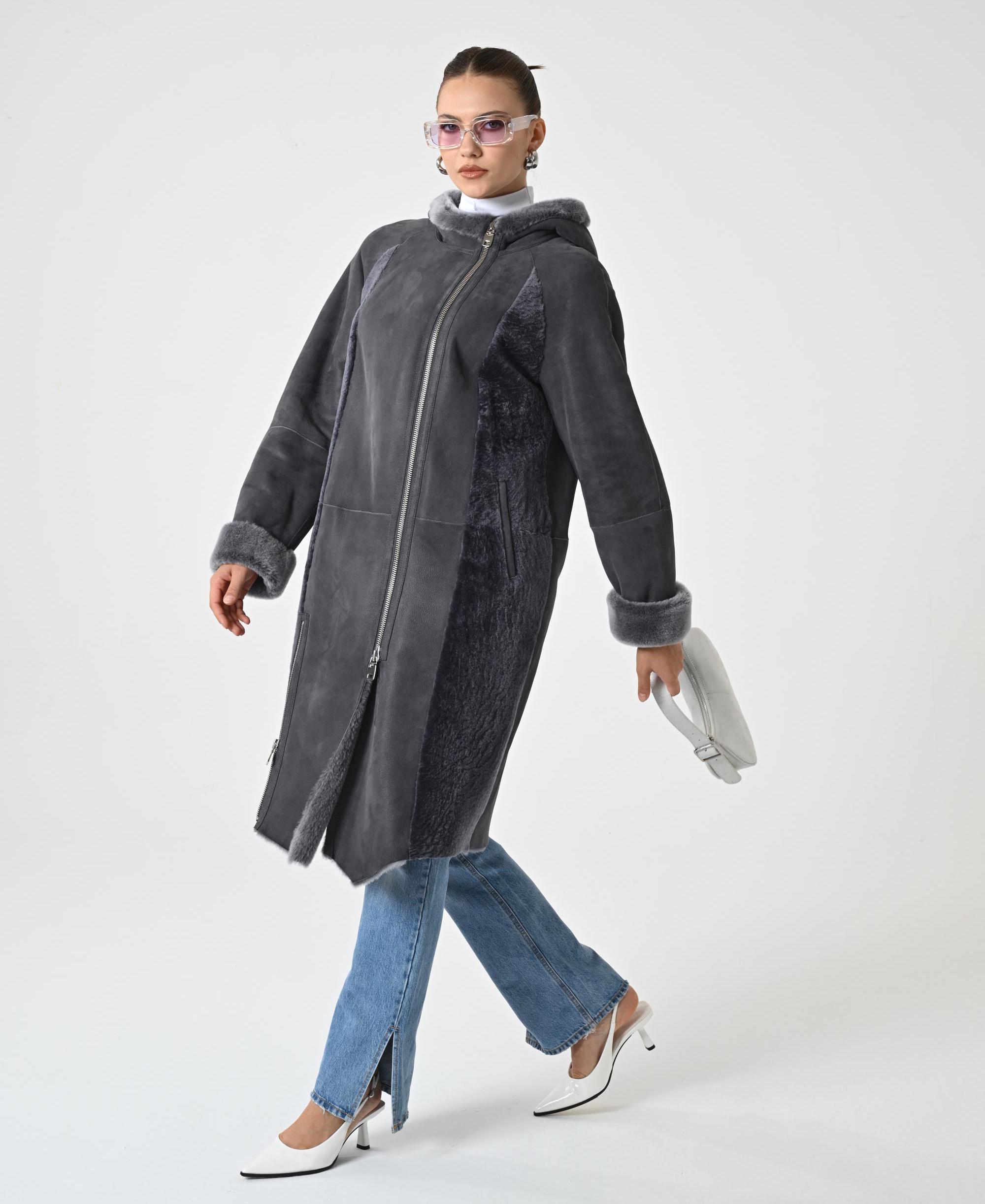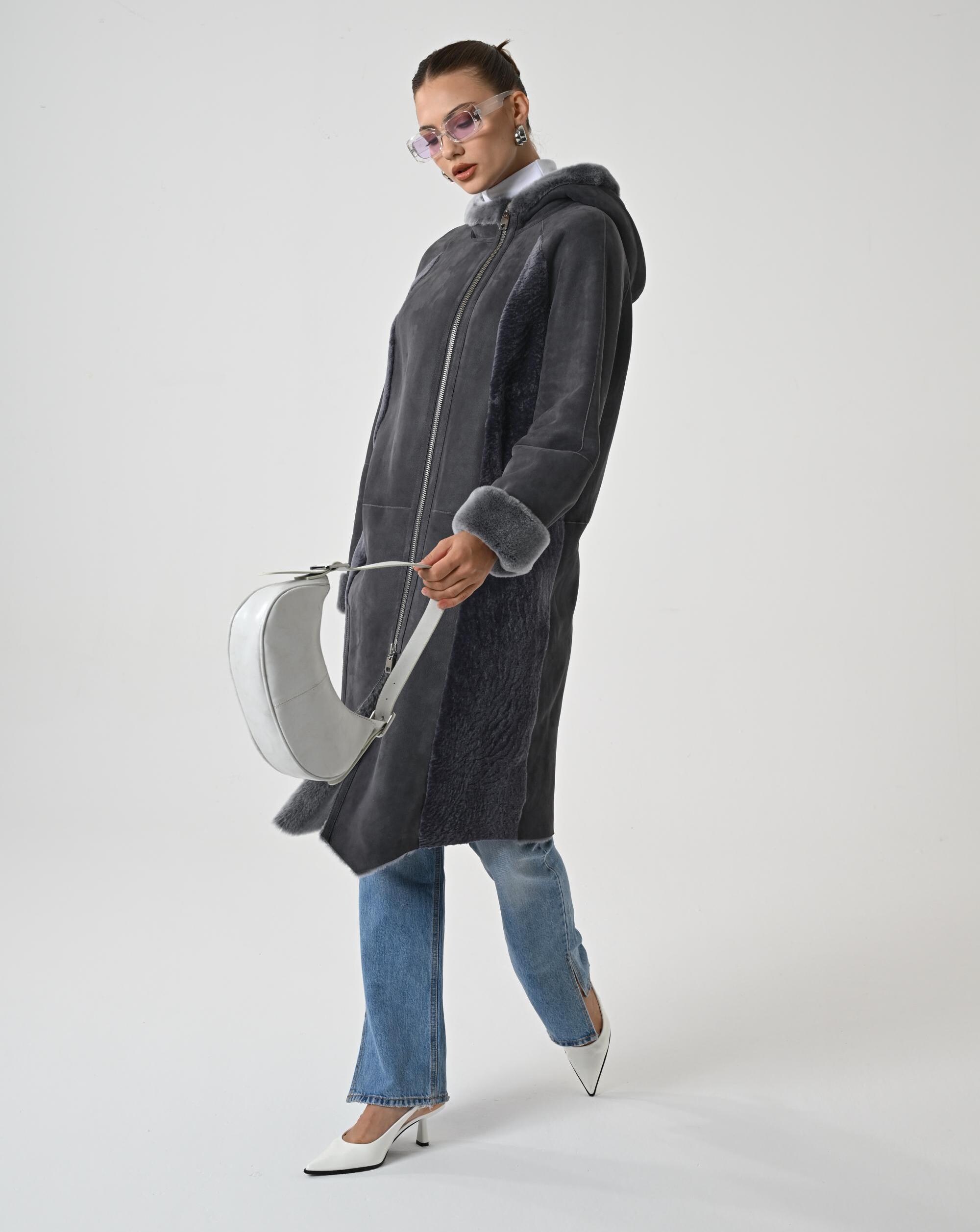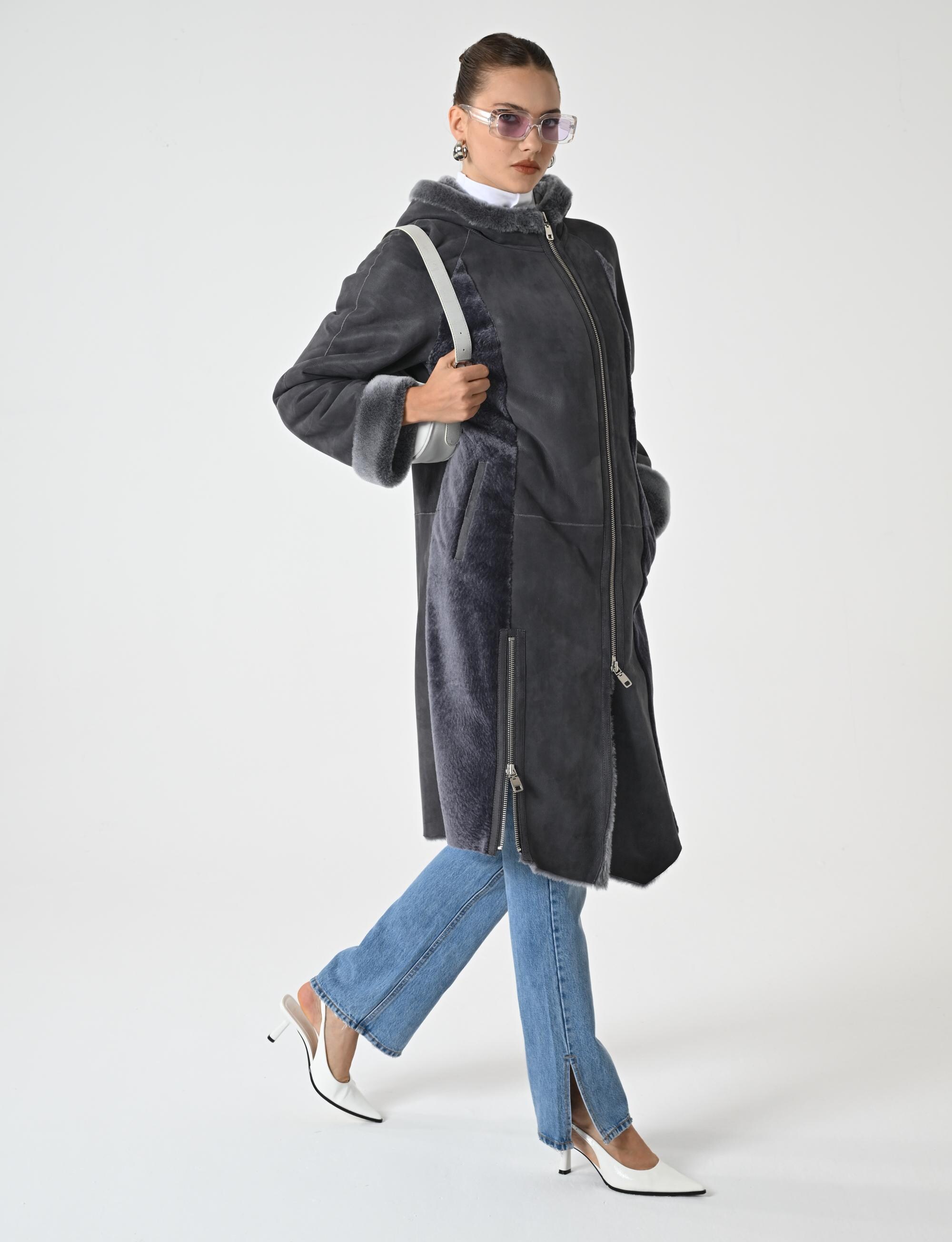 GRAY WOMAN OVERCOAT | Woman Gray Topcoat | Winter Fashion for Women | Cozy Feather Interlining | Woman Warm Long Coat | Hooded Woman Coat