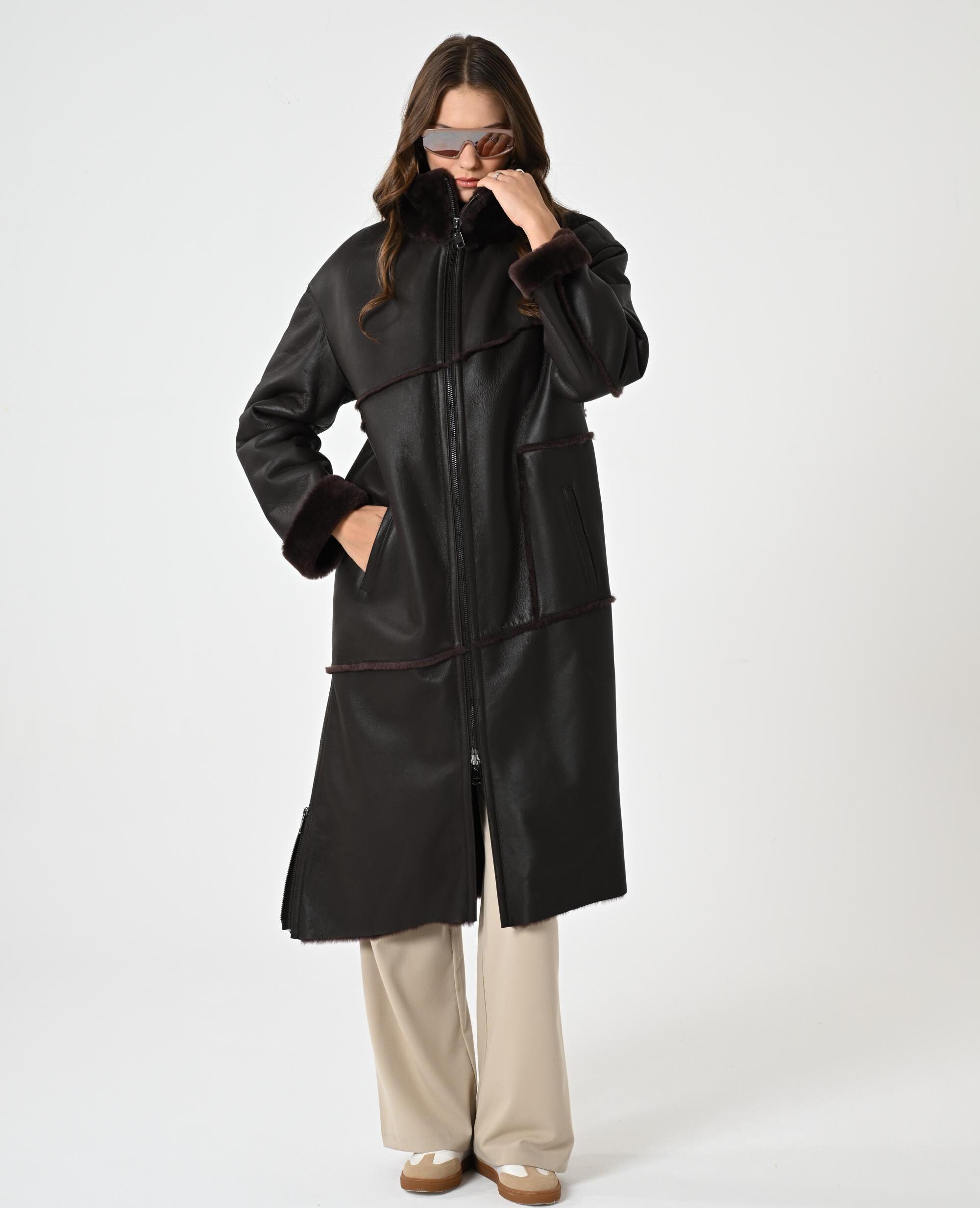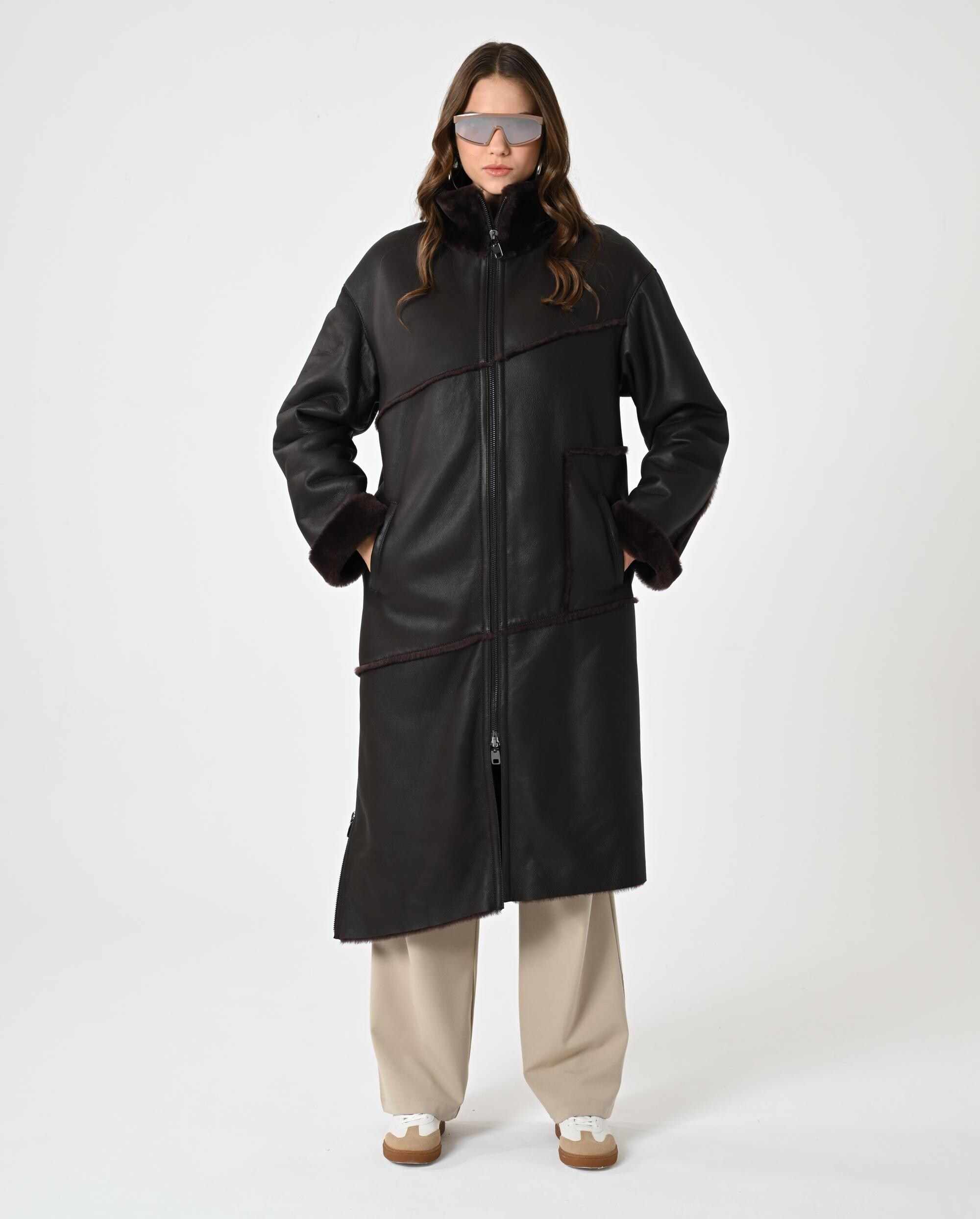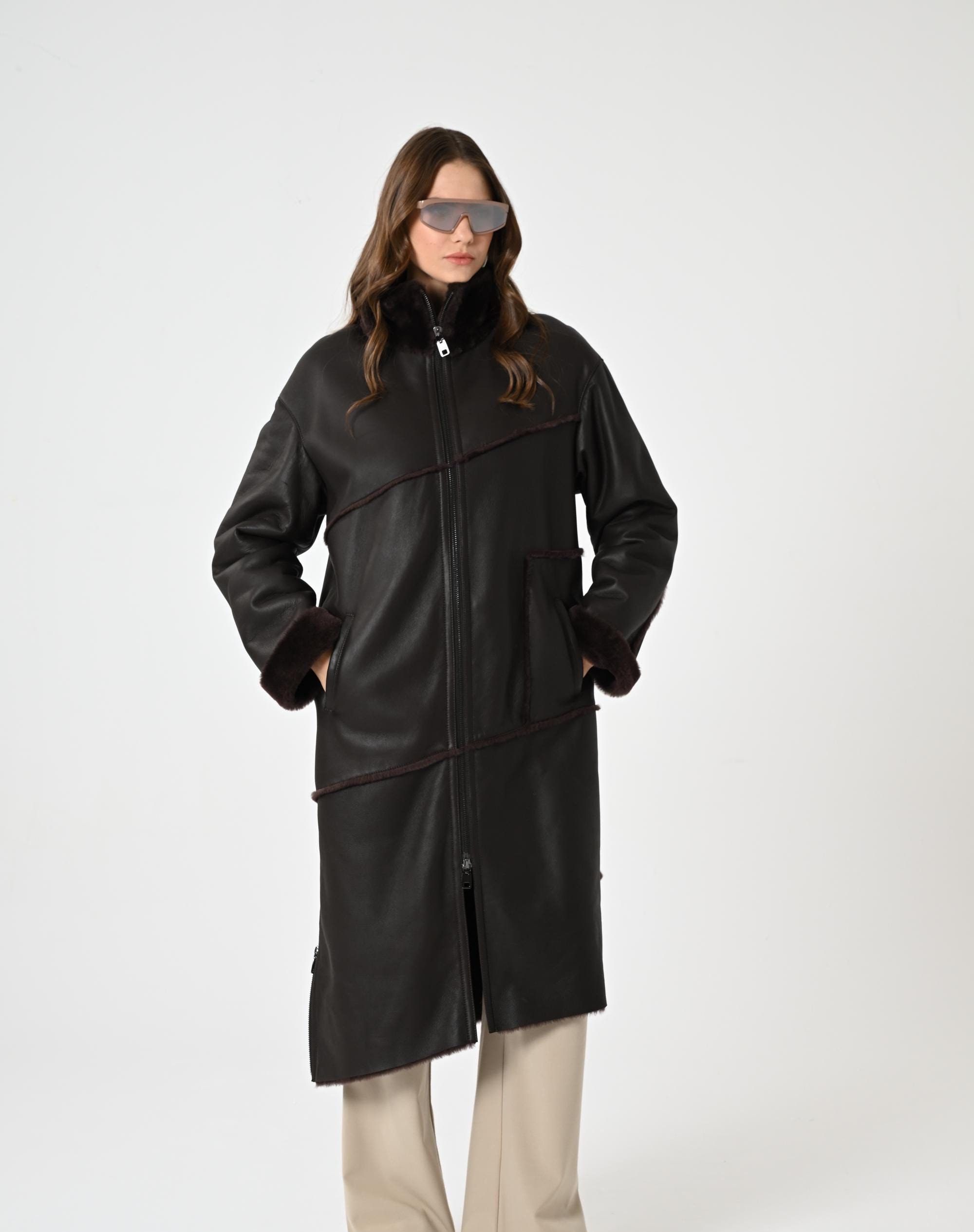 DARK BROWN OVERCOAT | Overcoat for Woman | Winter Fashion | Dark Brown Woman Overcoat | Genuine Lambskin Topcoat | Genuine Spanish Merino |