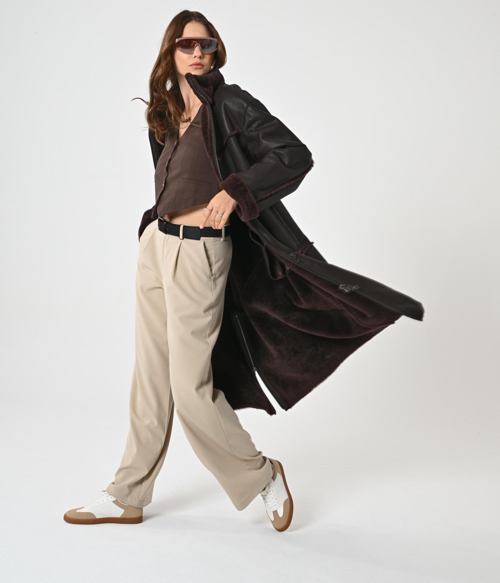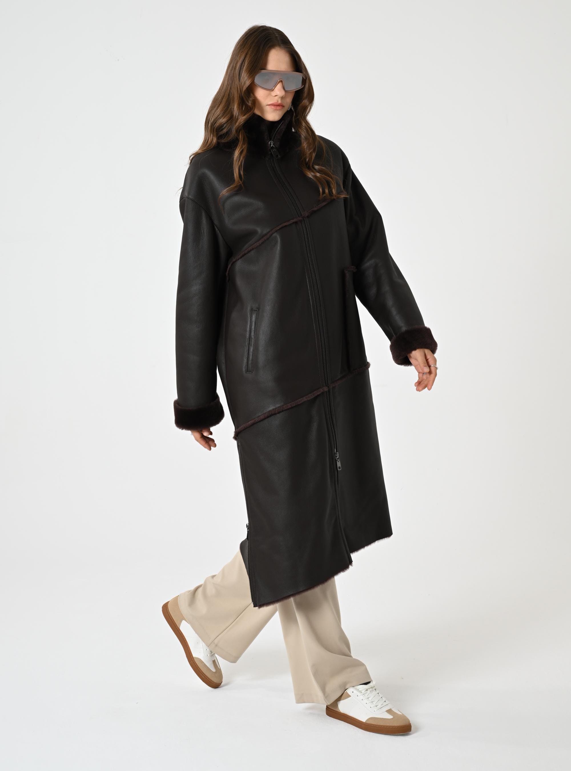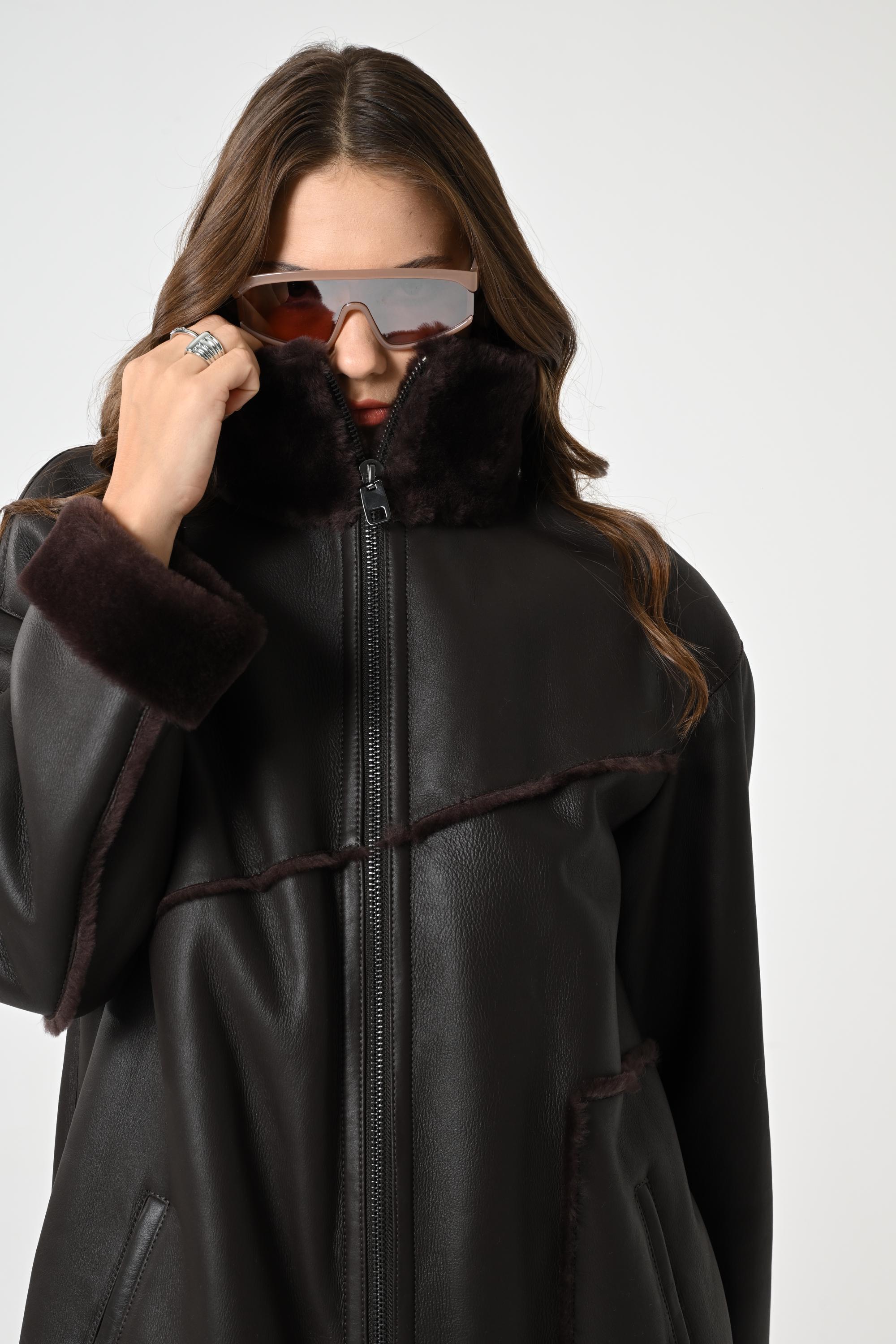 DARK BROWN OVERCOAT | Overcoat for Woman | Winter Fashion | Dark Brown Woman Overcoat | Genuine Lambskin Topcoat | Genuine Spanish Merino |