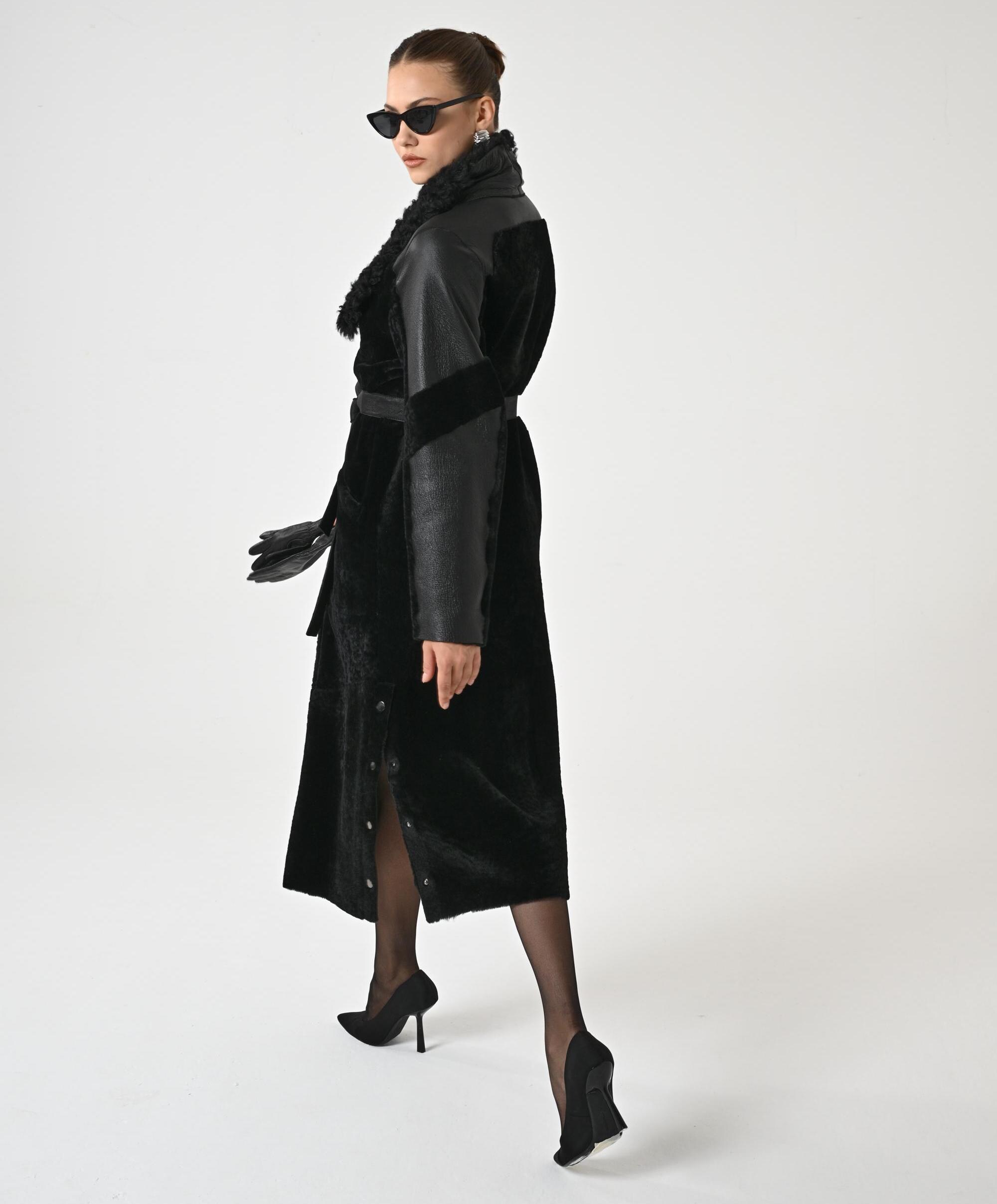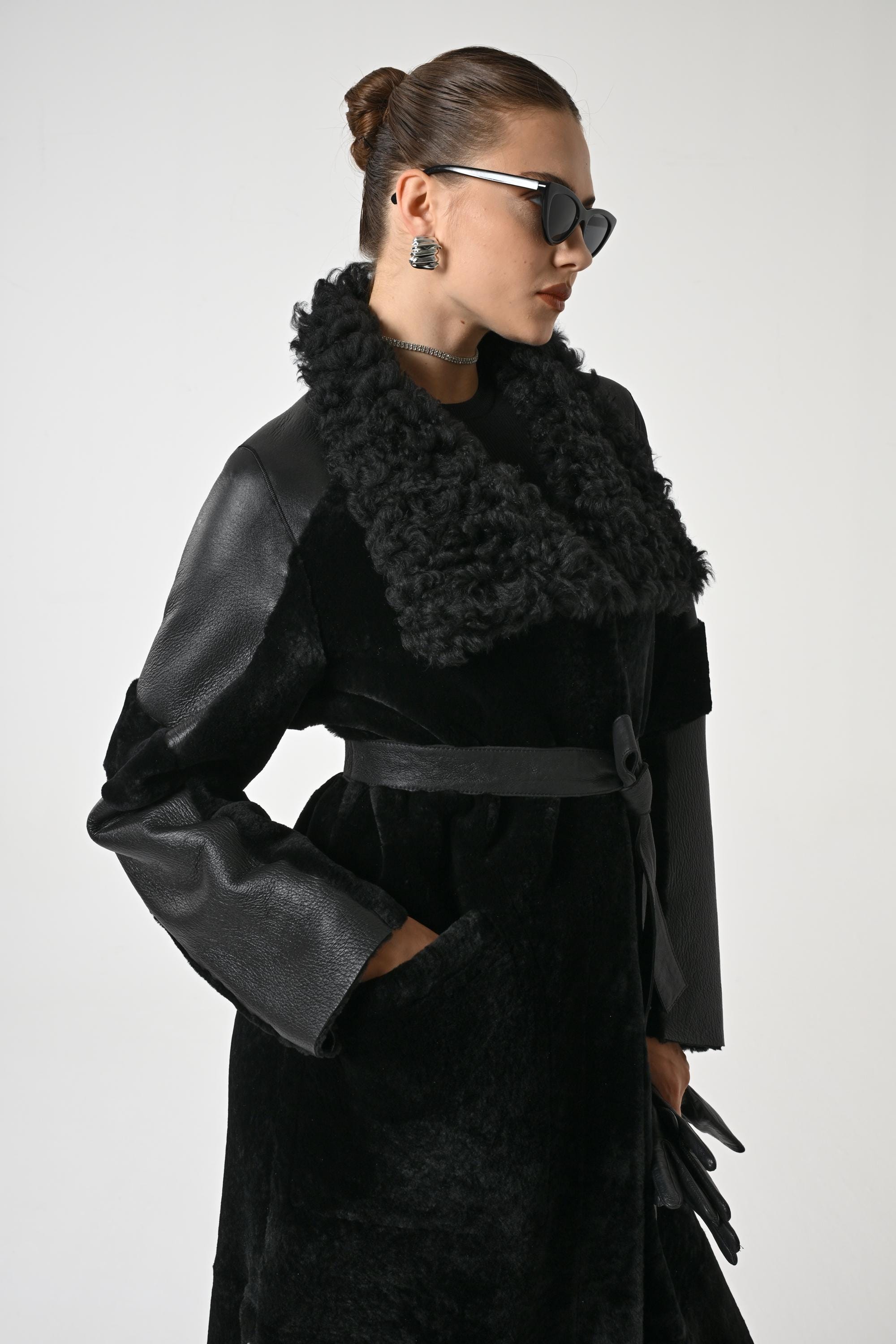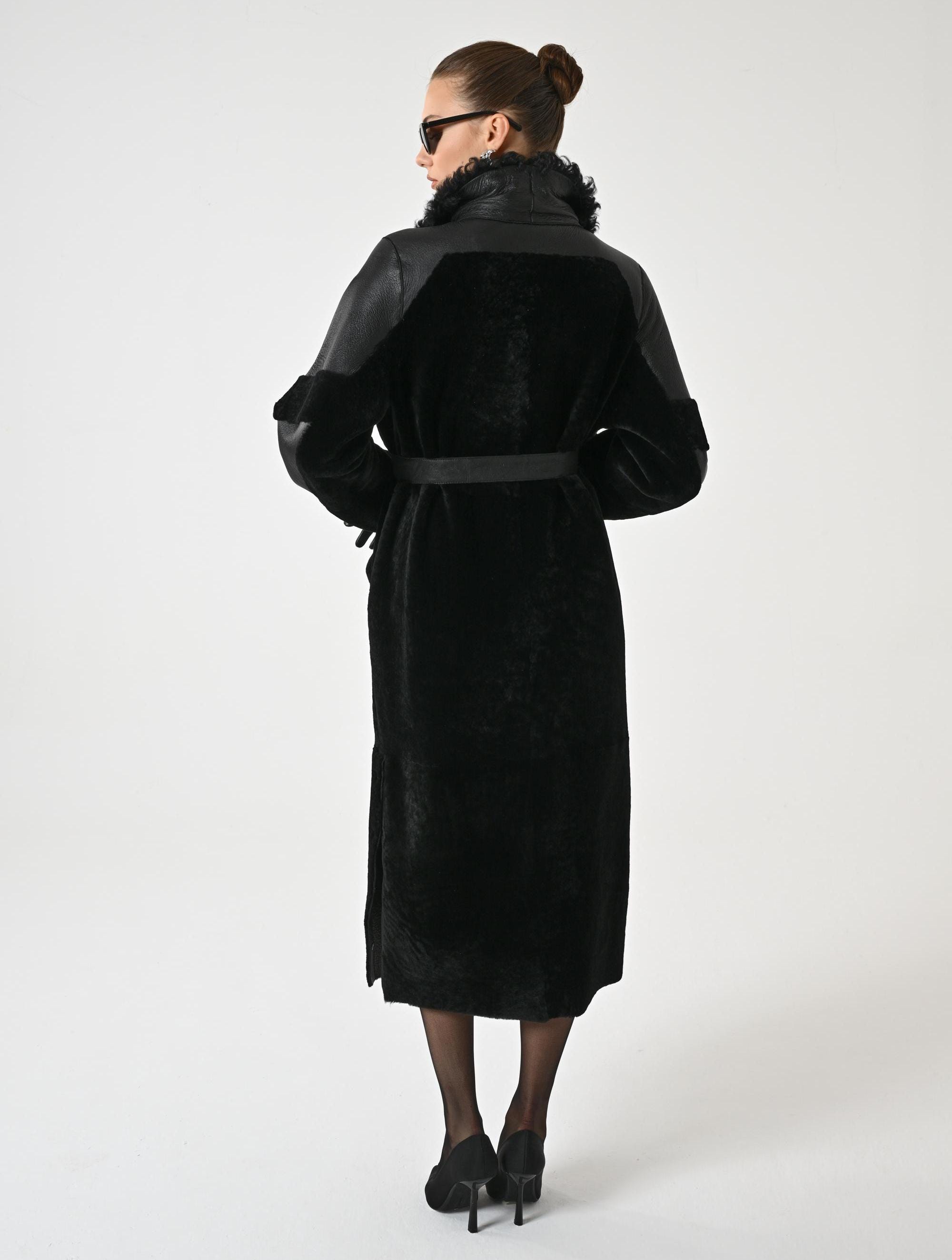 BLACK TRENCH COAT | Woman Trench Coat | Overcoat for Woman | Topcoat for Woman | Winter Coat | Long Coat Woman | Genune Merino and Astrakhan