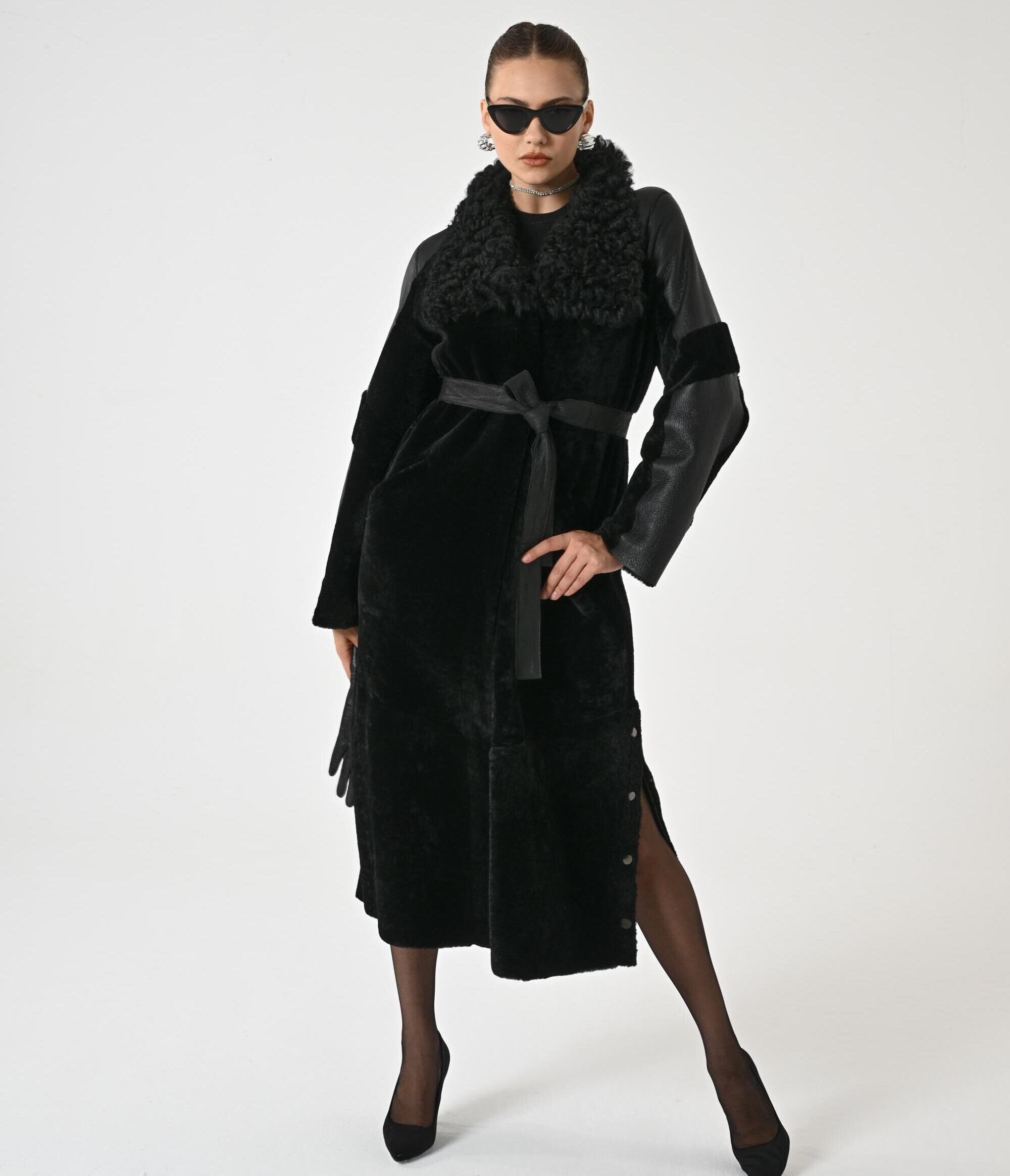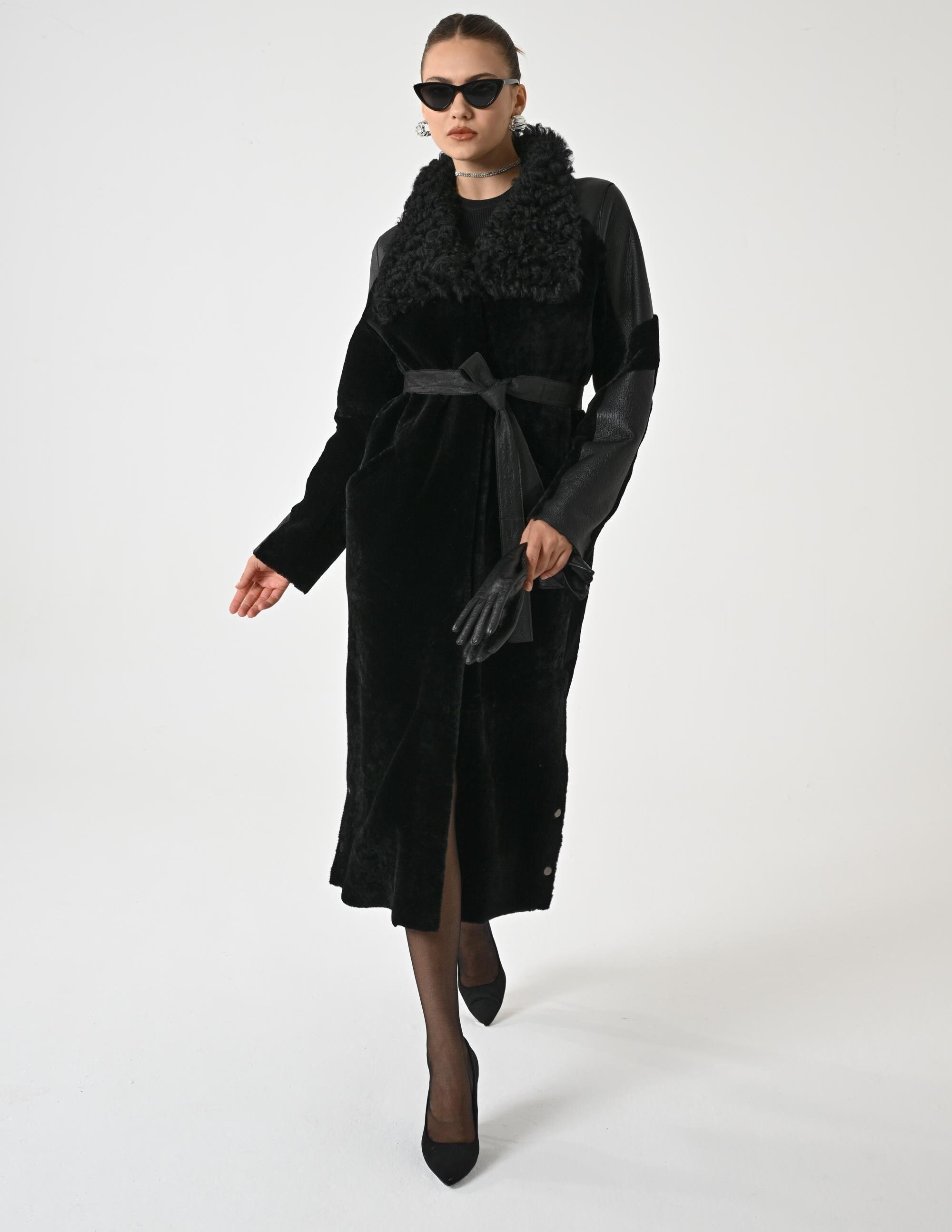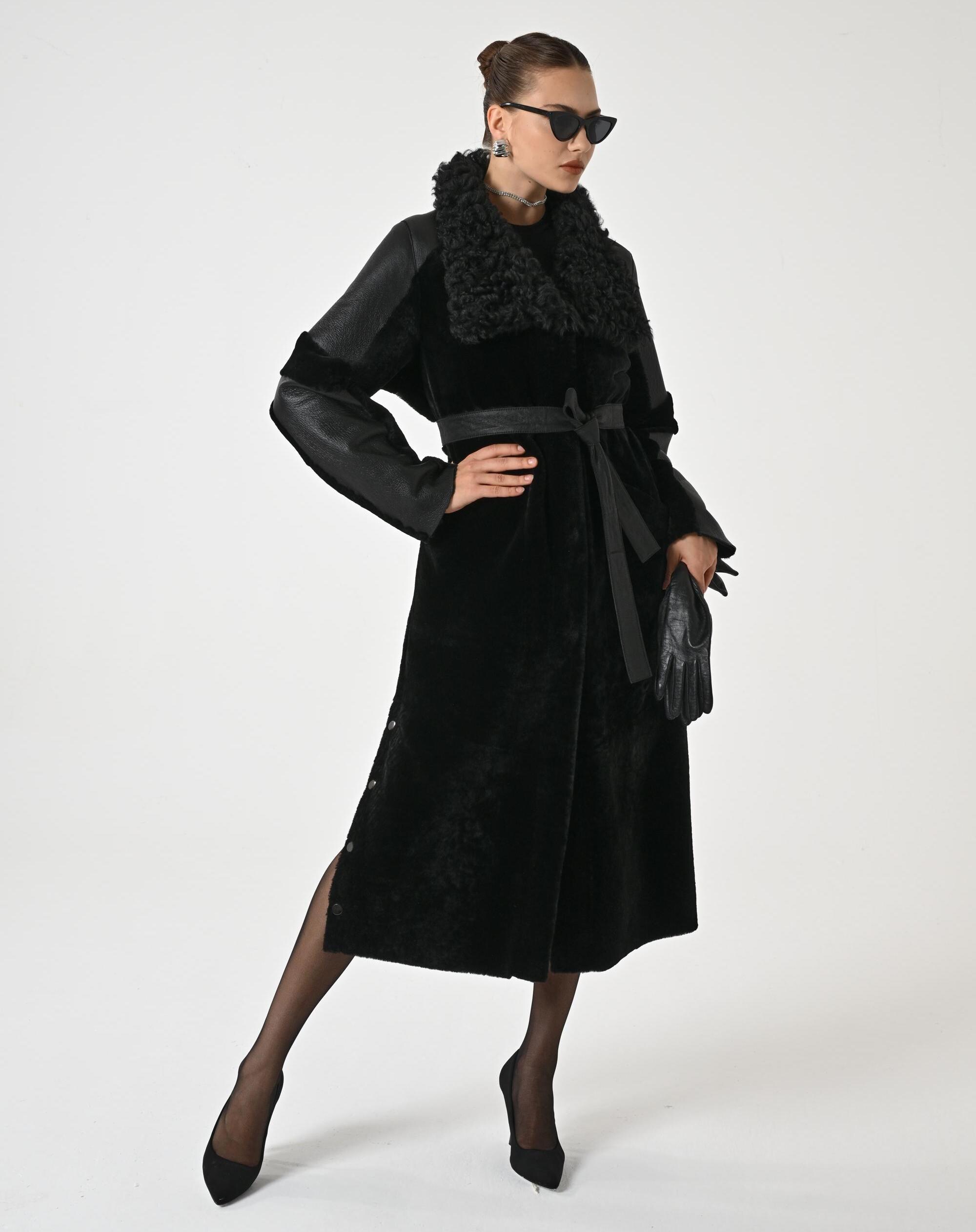BLACK TRENCH COAT | Woman Trench Coat | Overcoat for Woman | Topcoat for Woman | Winter Coat | Long Coat Woman | Genune Merino and Astrakhan