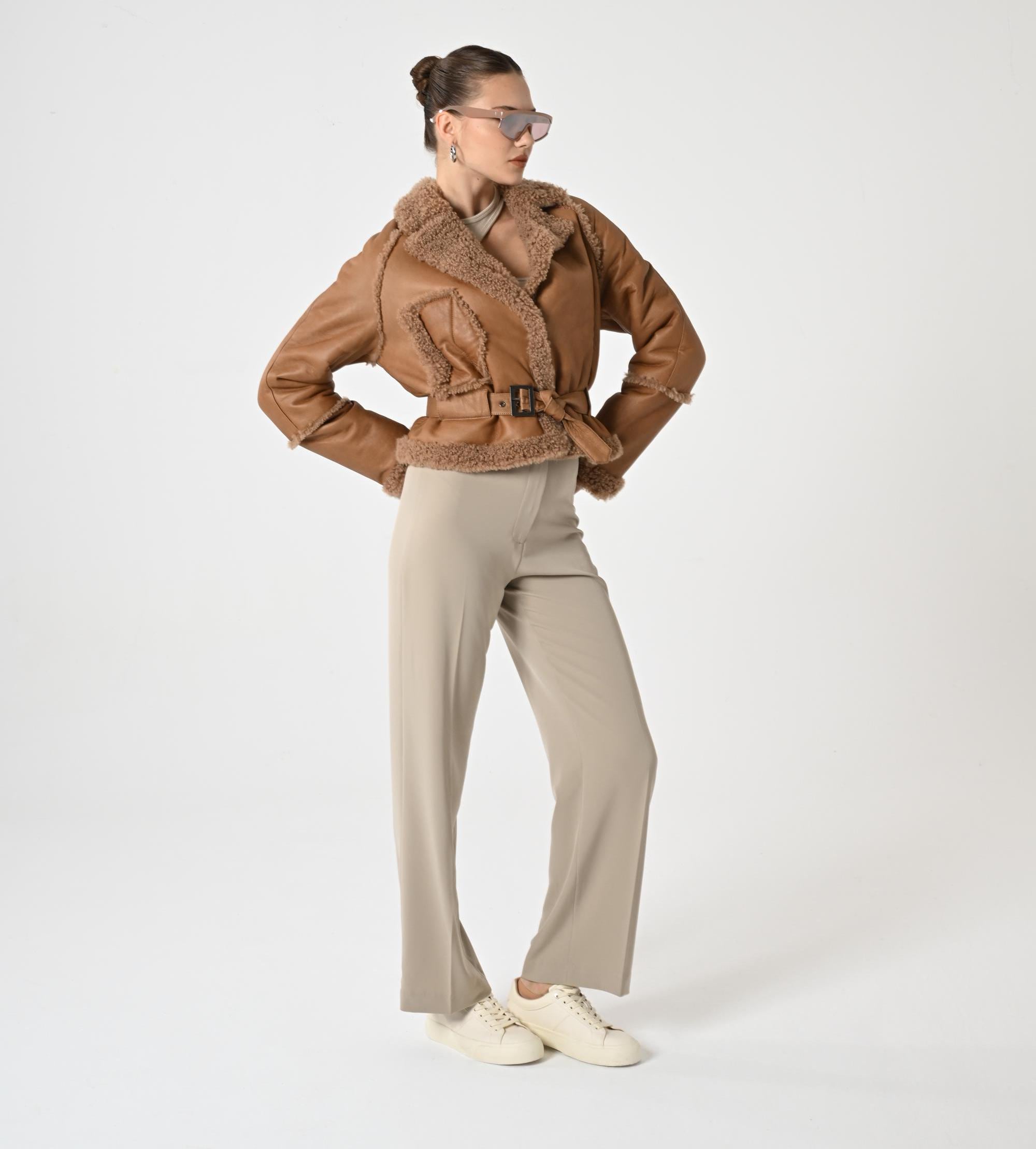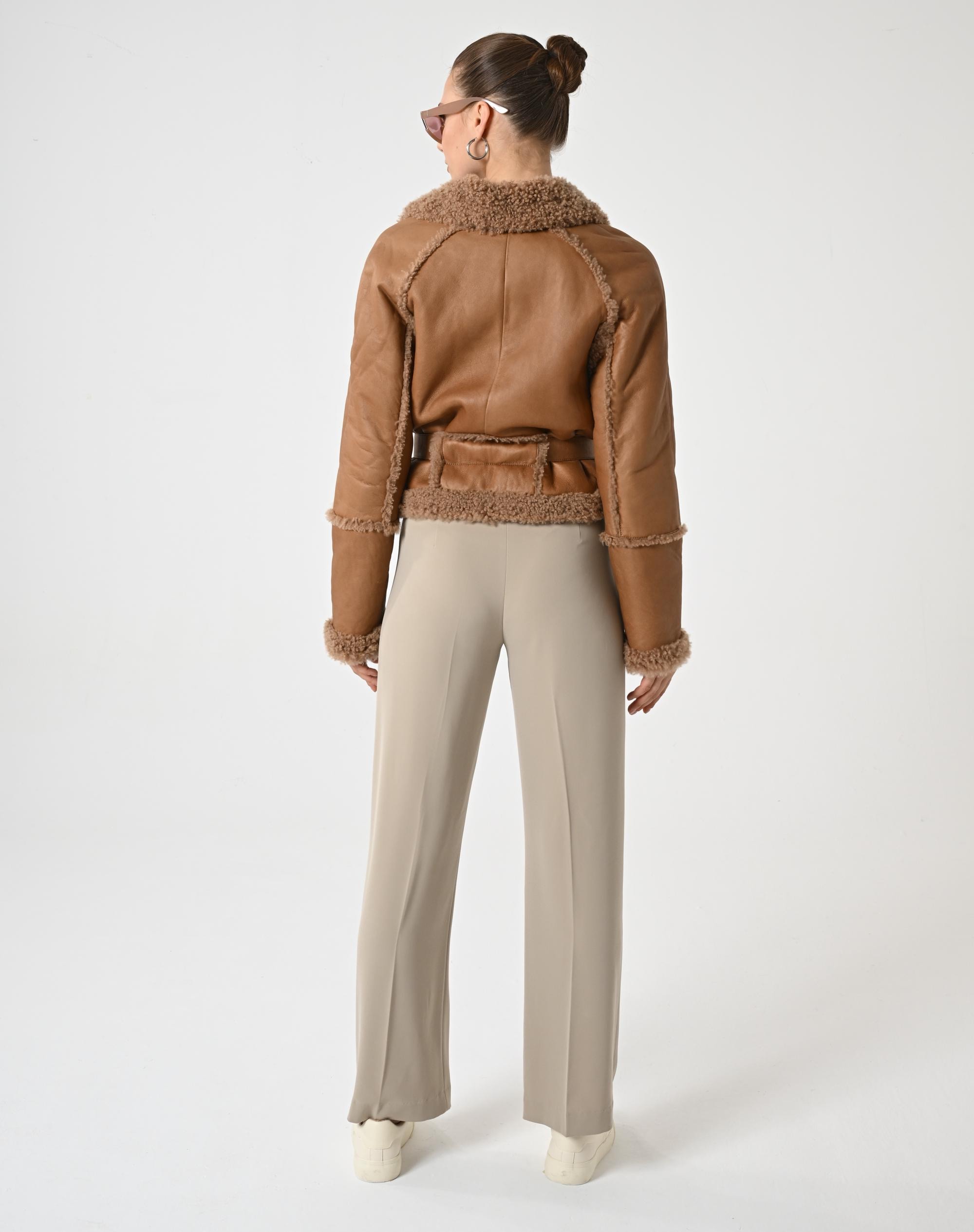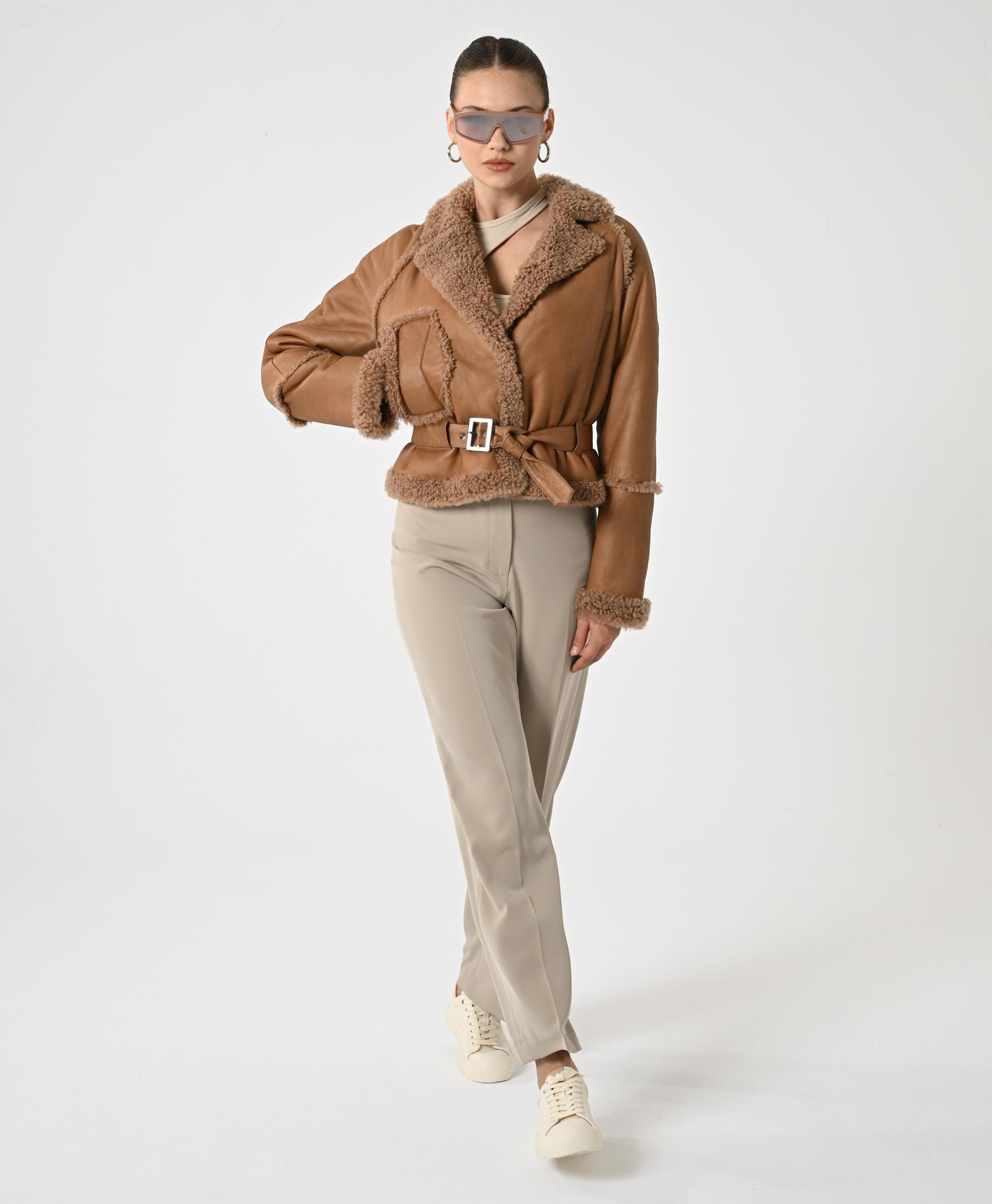 BOMBER COGNAC JACKET | Cognac Brown Woman Cropped Jacket