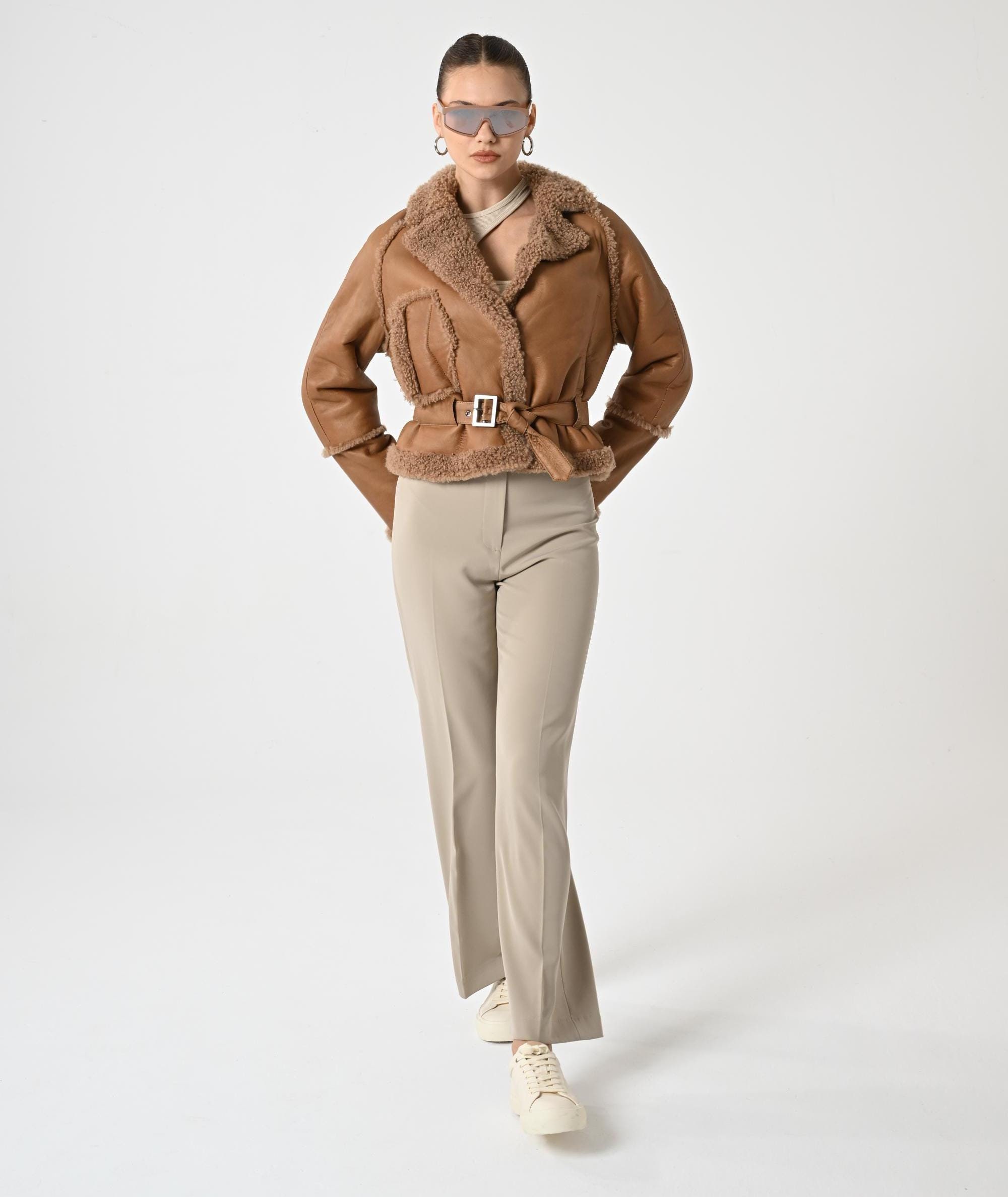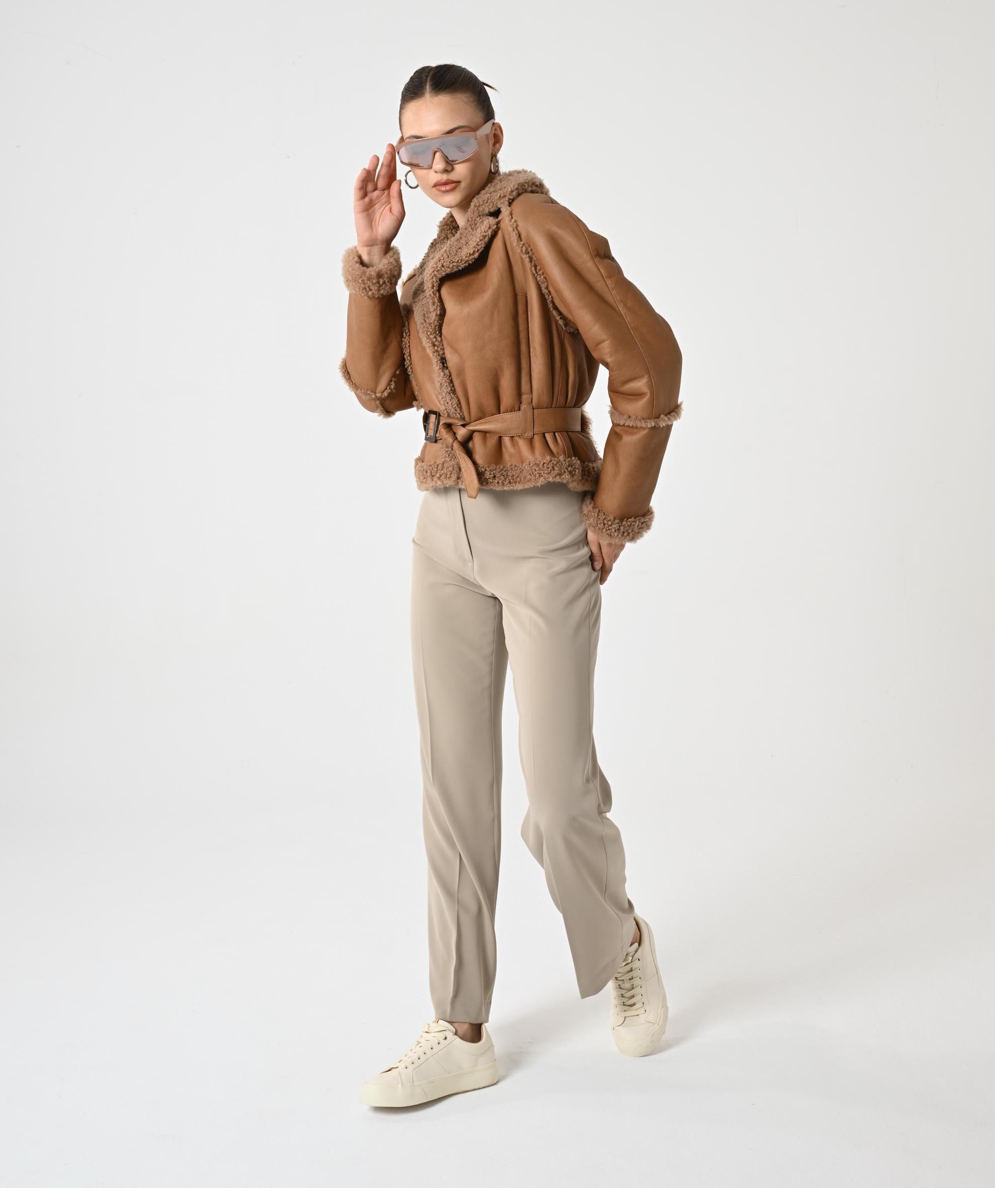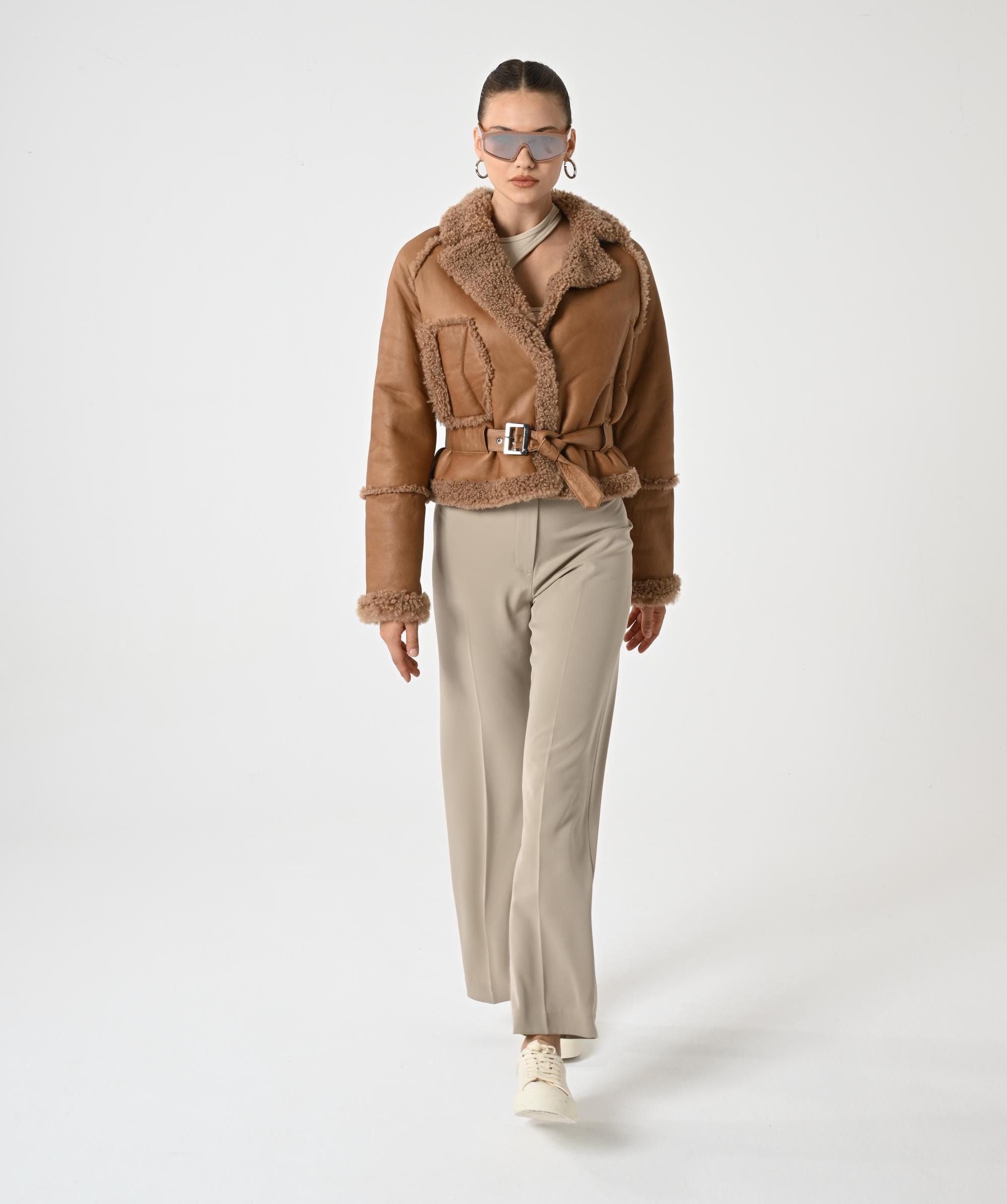BOMBER COGNAC JACKET | Cognac Brown Woman Cropped Jacket