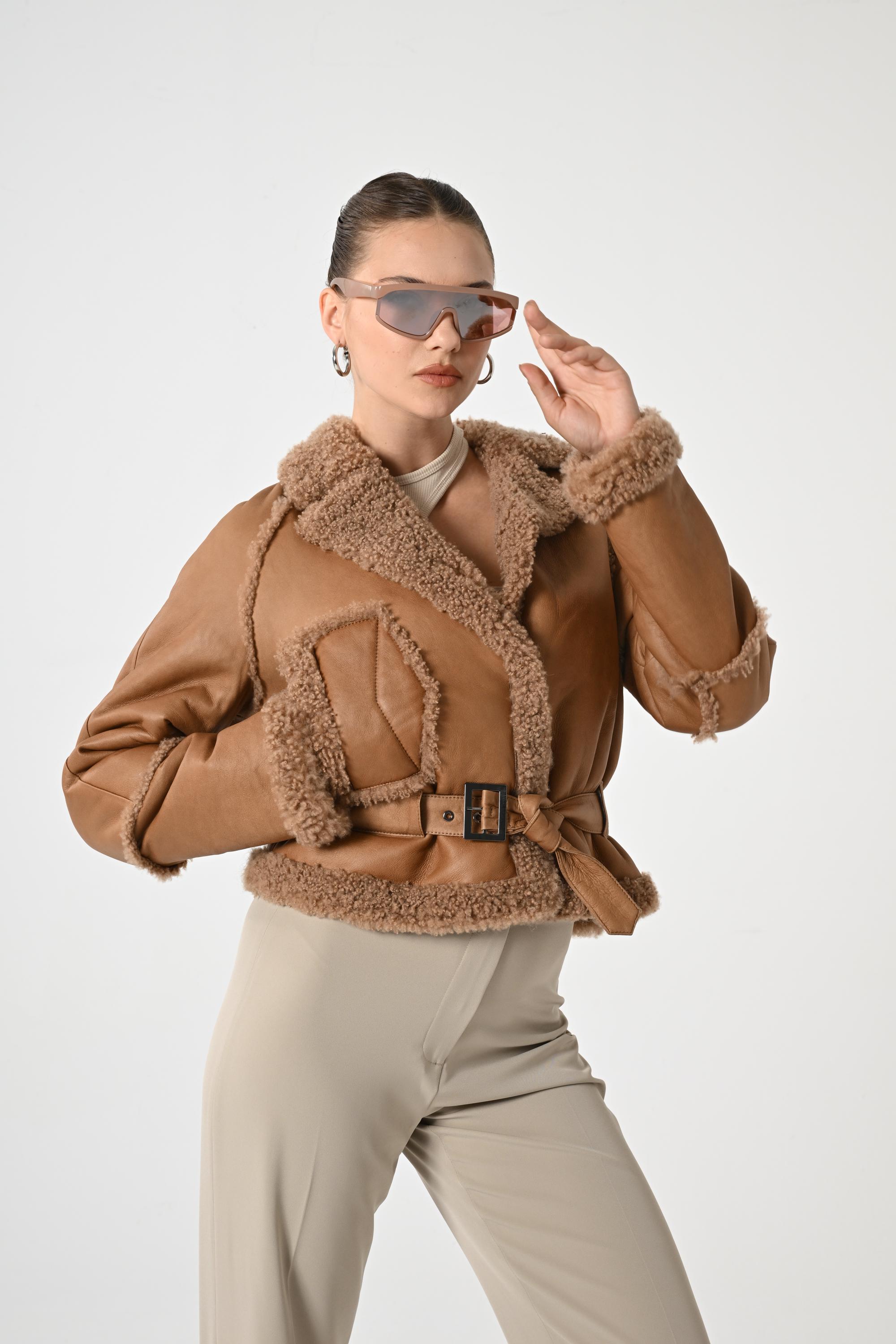 BOMBER COGNAC JACKET | Cognac Brown Woman Cropped Jacket | Cropped Jacket | Woman Bomber Jacket | Woman Aviator Jacket | All Seasons Jacket