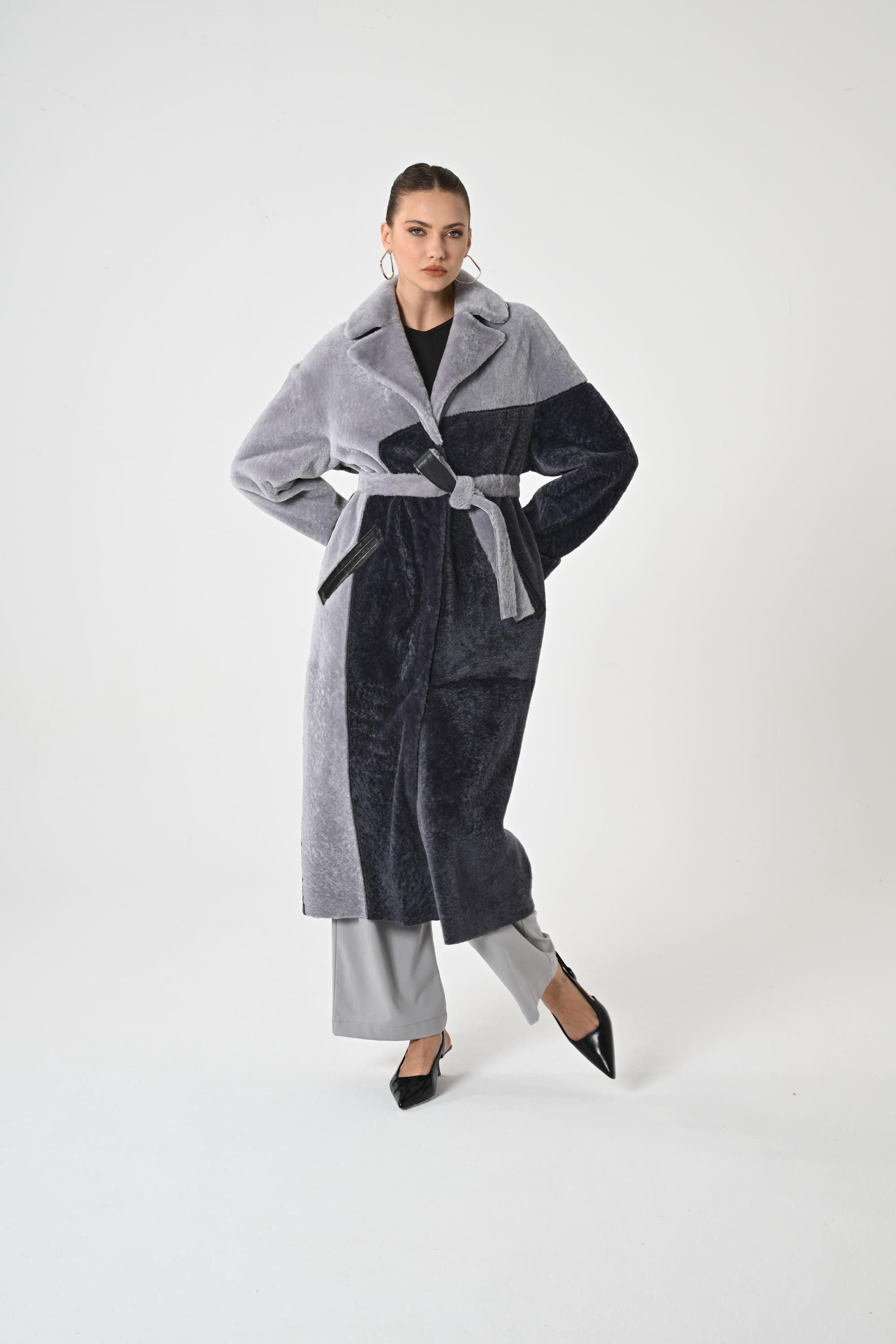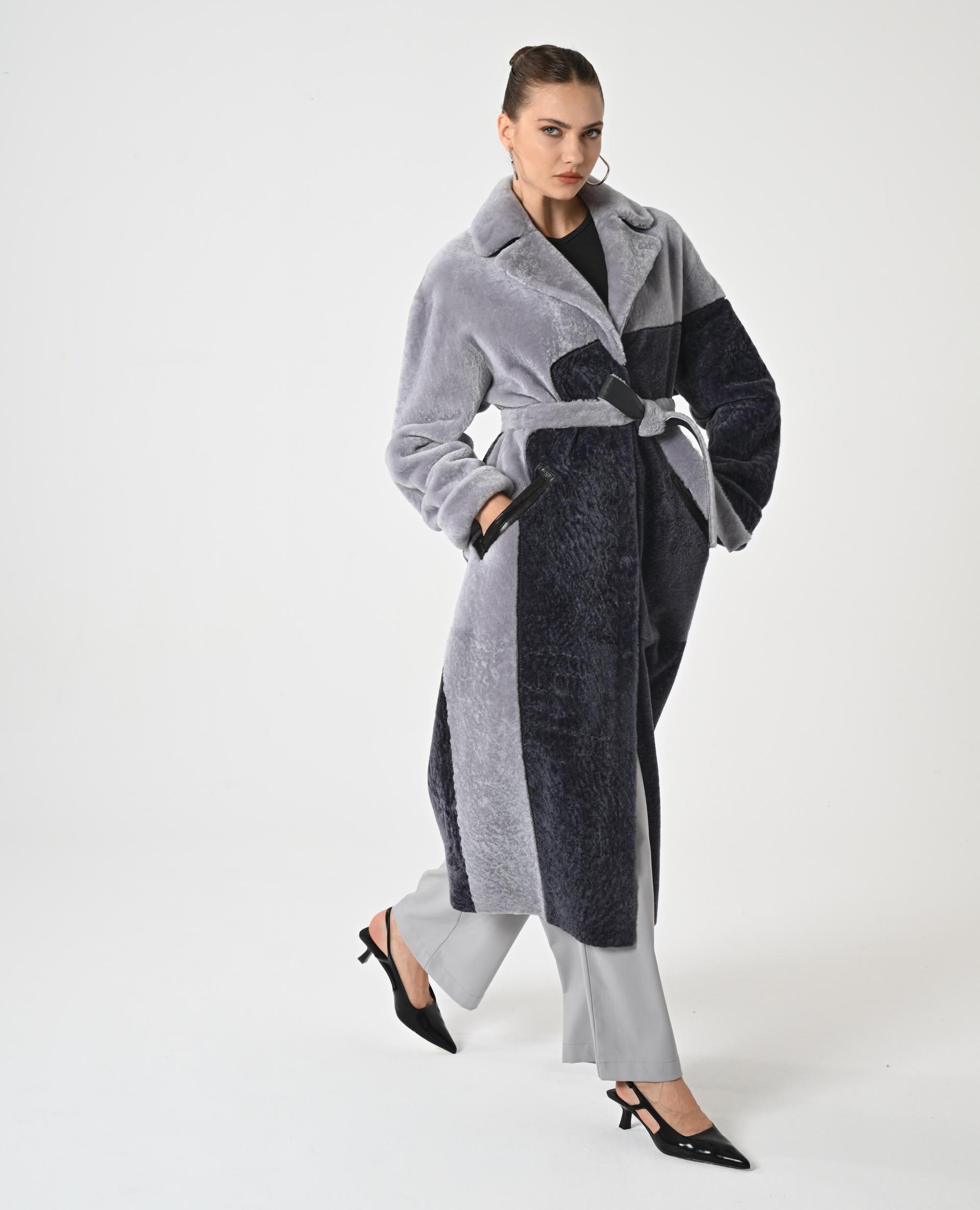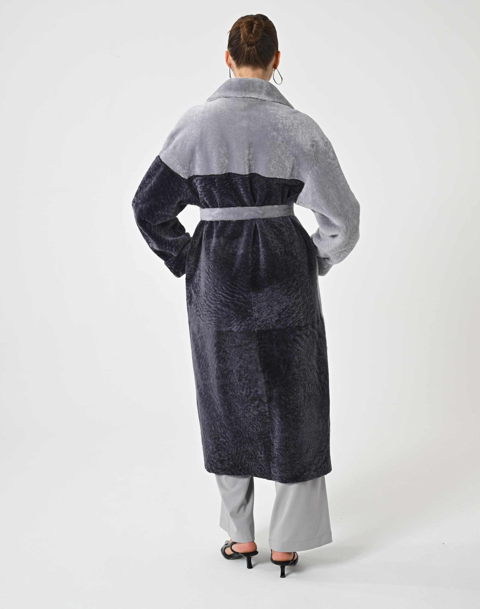 WOMAN TRENCH COAT | Gray Overcoat for Woman | Genuine Astrakhan Lambskin | Woman Winter Wrap | Gray Woman Topcoat | Trench Coat for Woman |