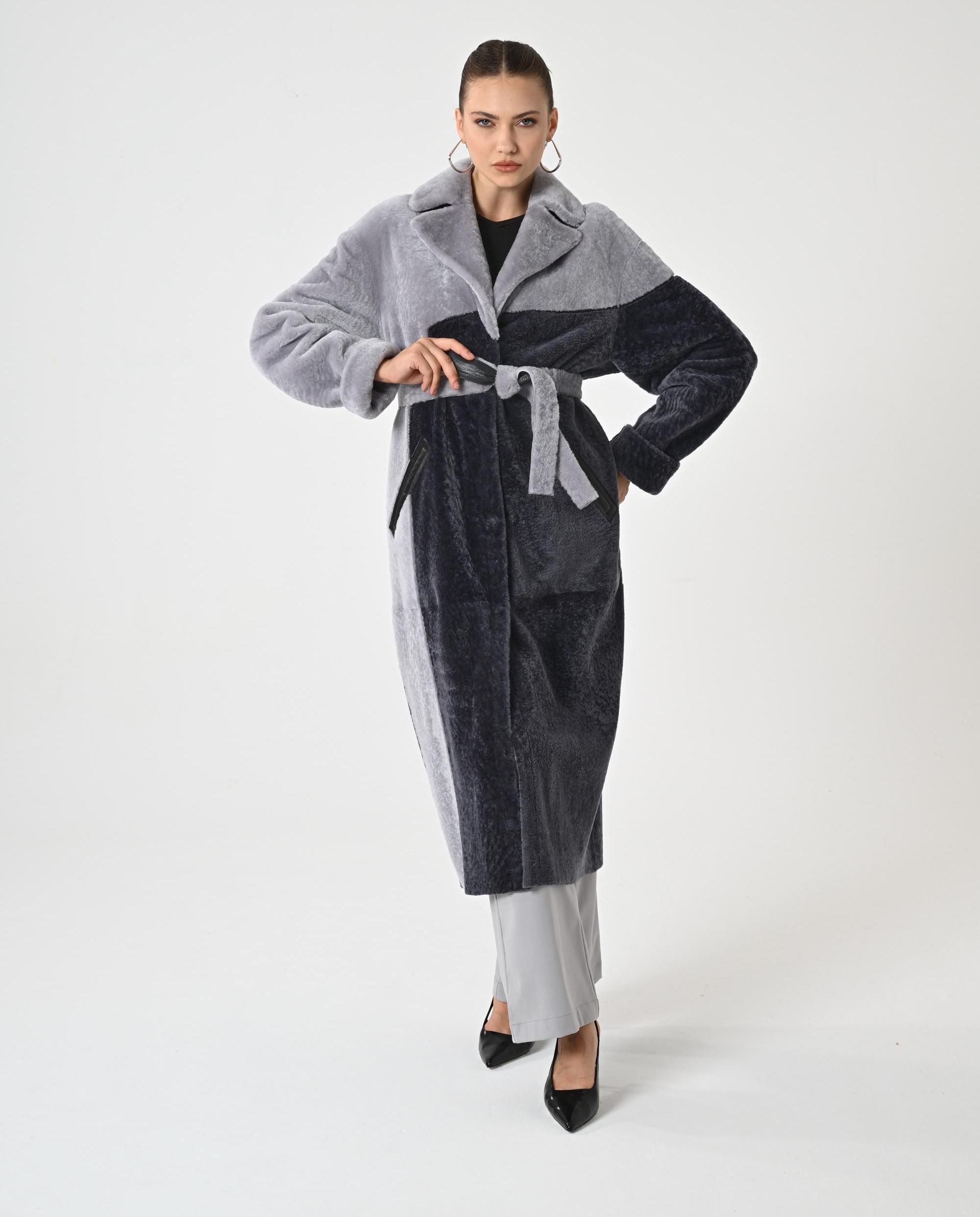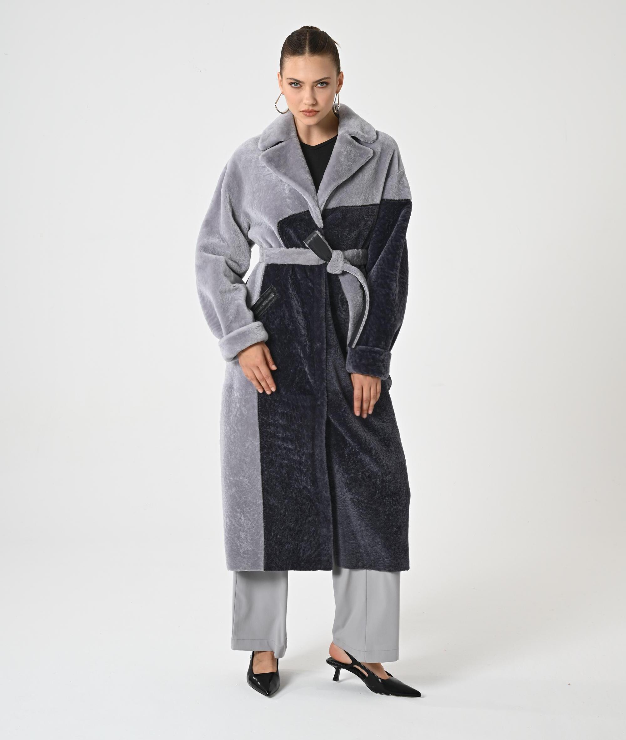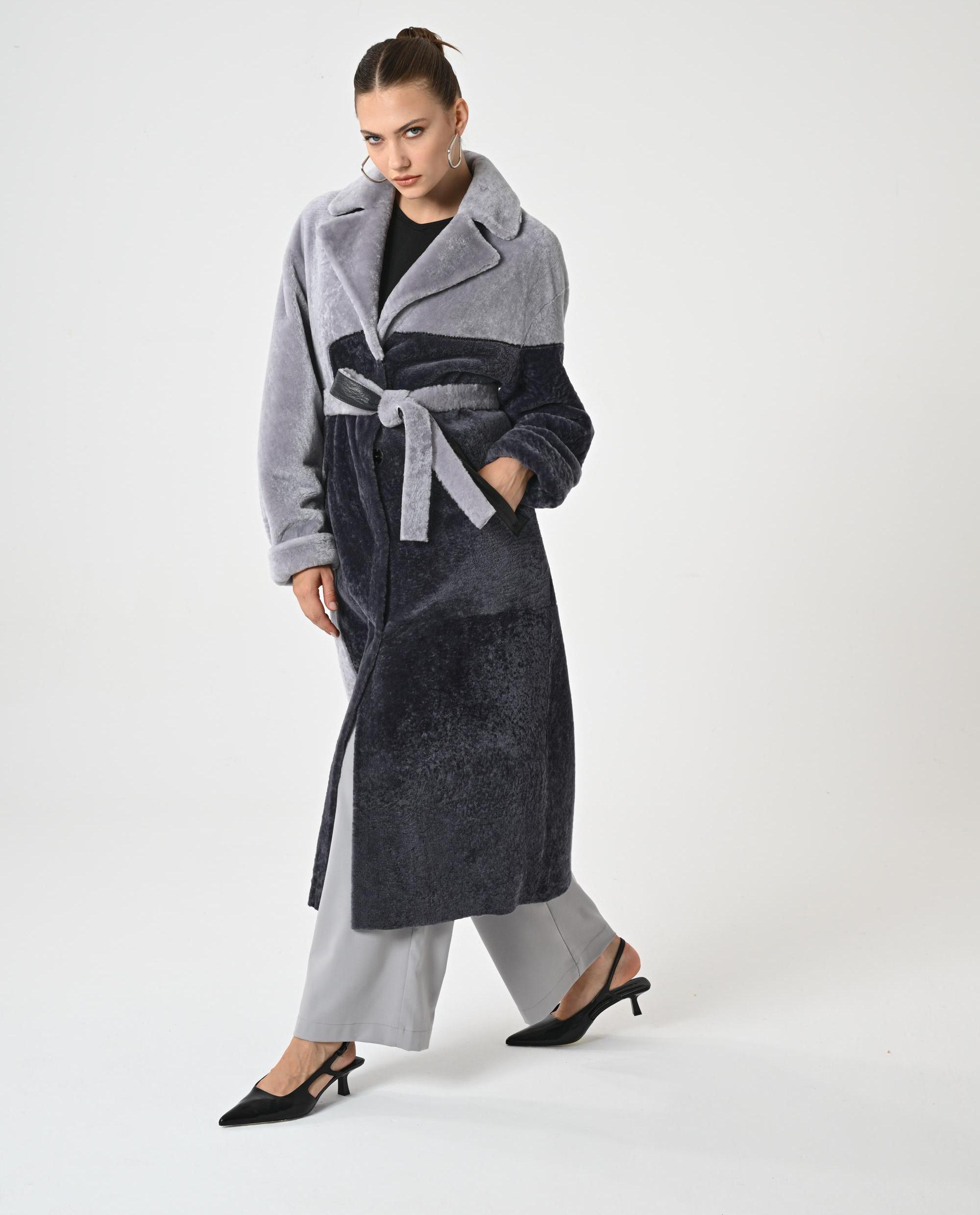 WOMAN TRENCH COAT | Gray Overcoat for Woman | Genuine Astrakhan Lambskin | Woman Winter Wrap | Gray Woman Topcoat | Trench Coat for Woman |