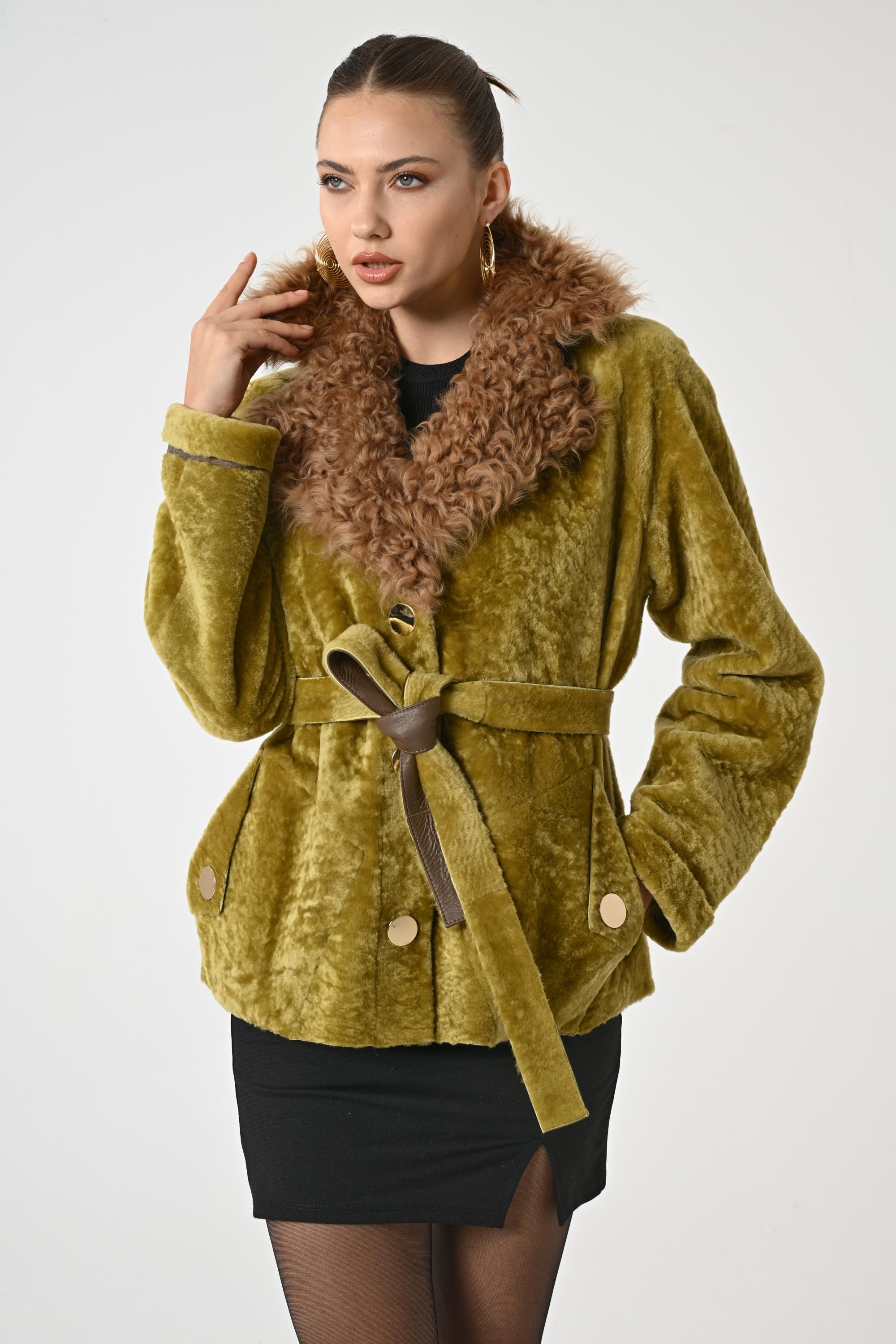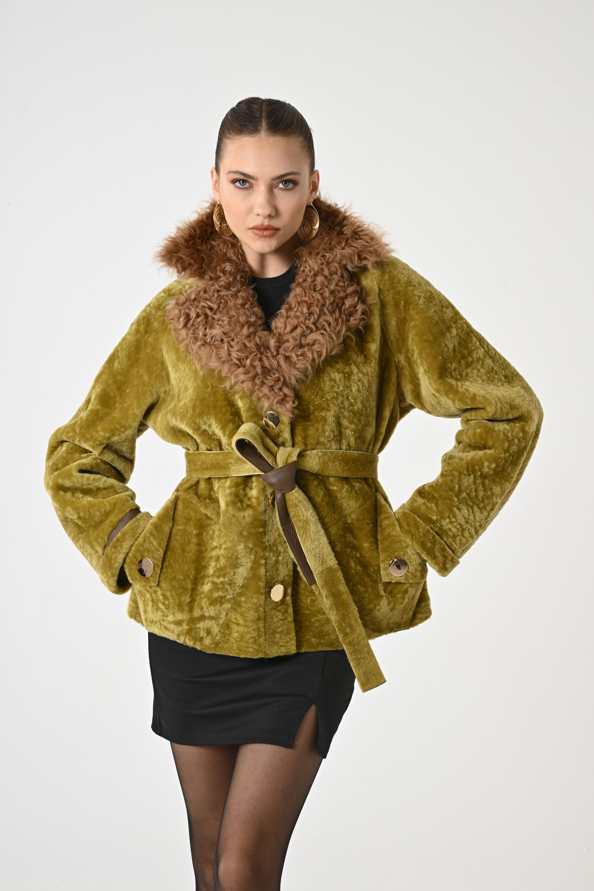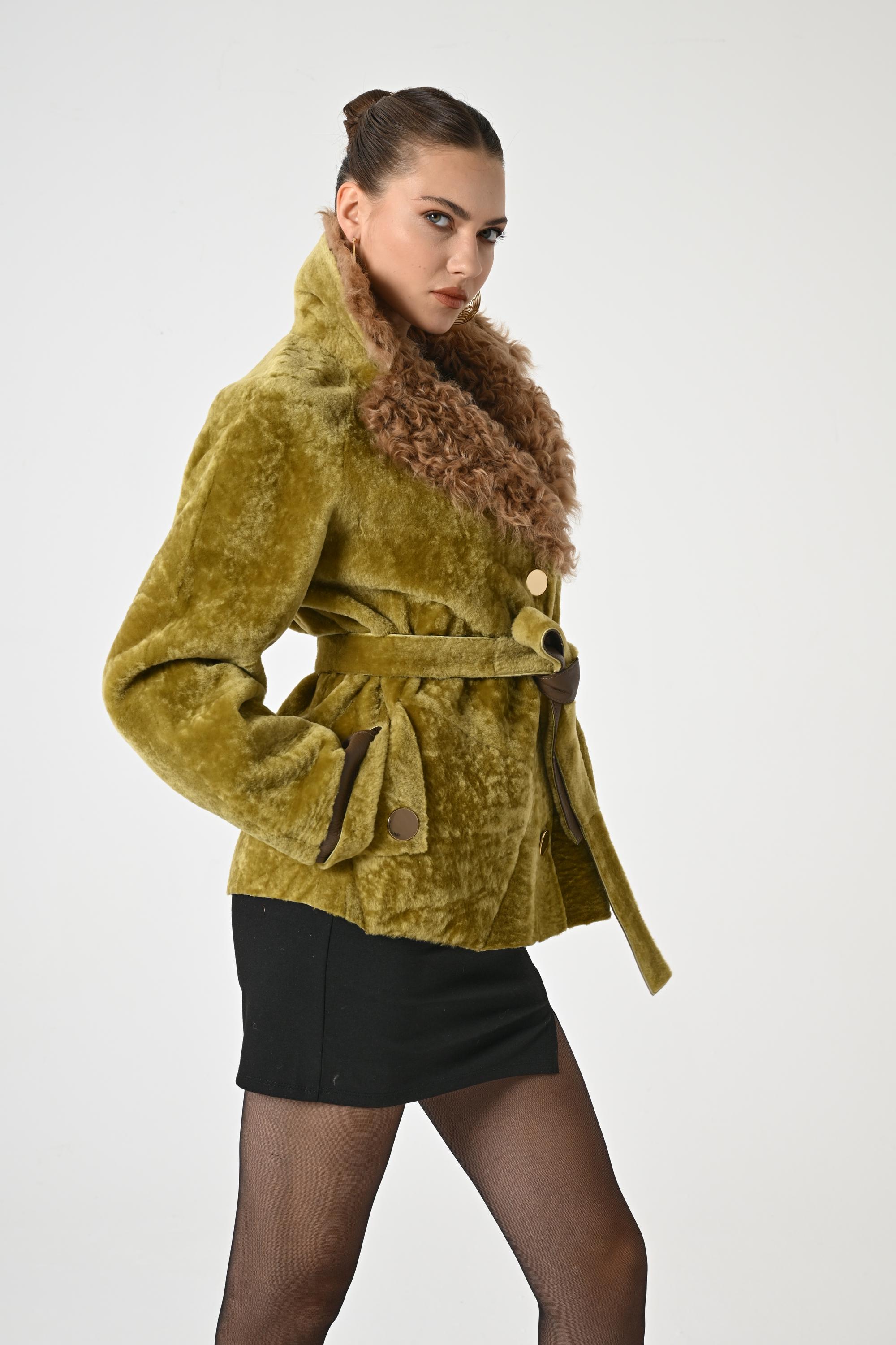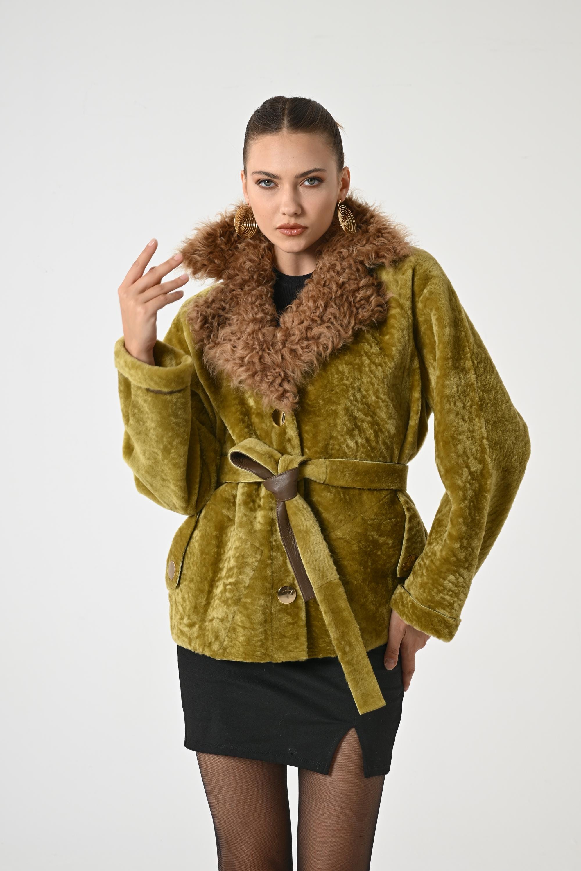 WOMAN COAT | Greenish Yellow Coat | Coat for Women | Teddy Coat | Single-Breasted Coat for Women | Women Leather Fur Peacoat | WinterFashion