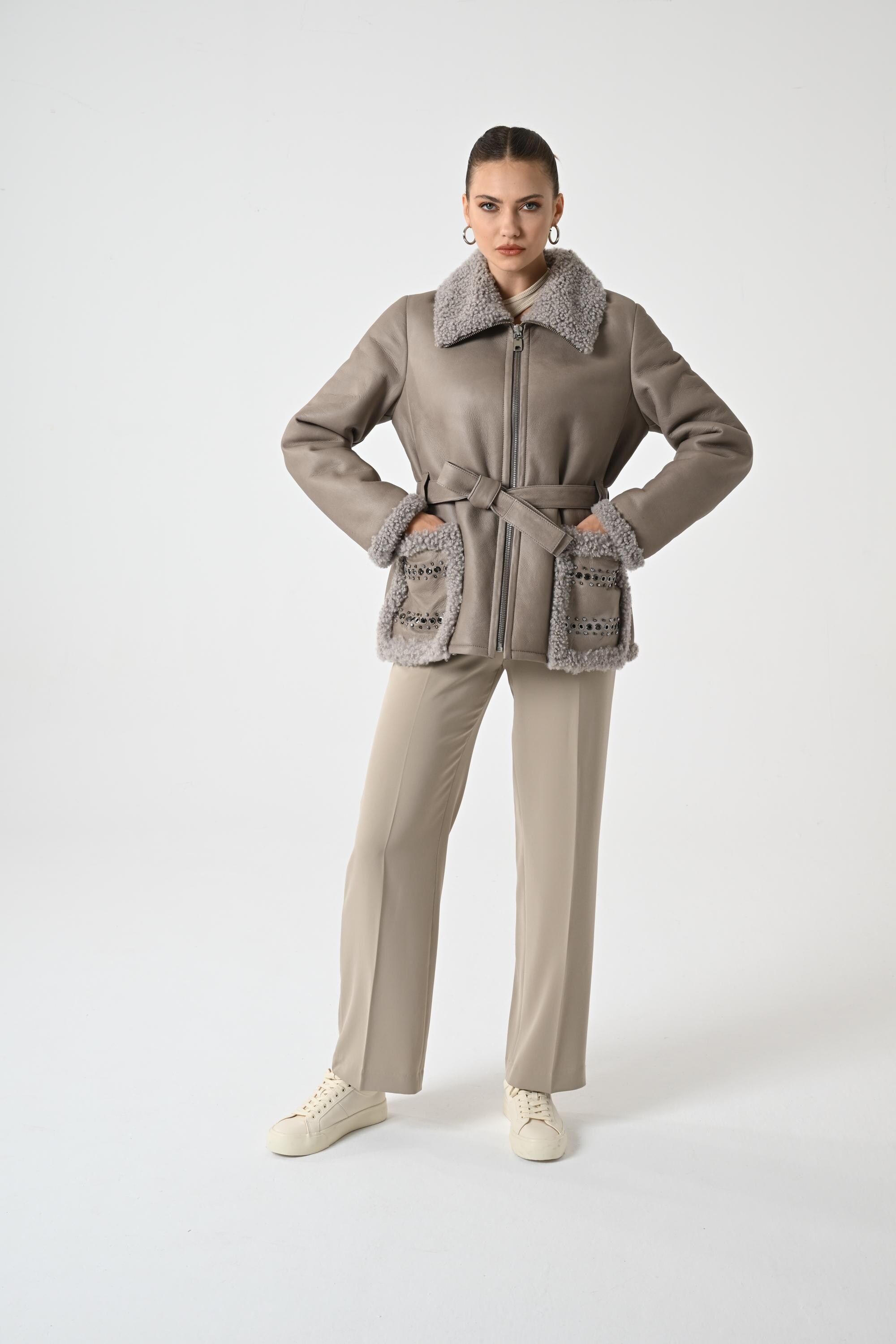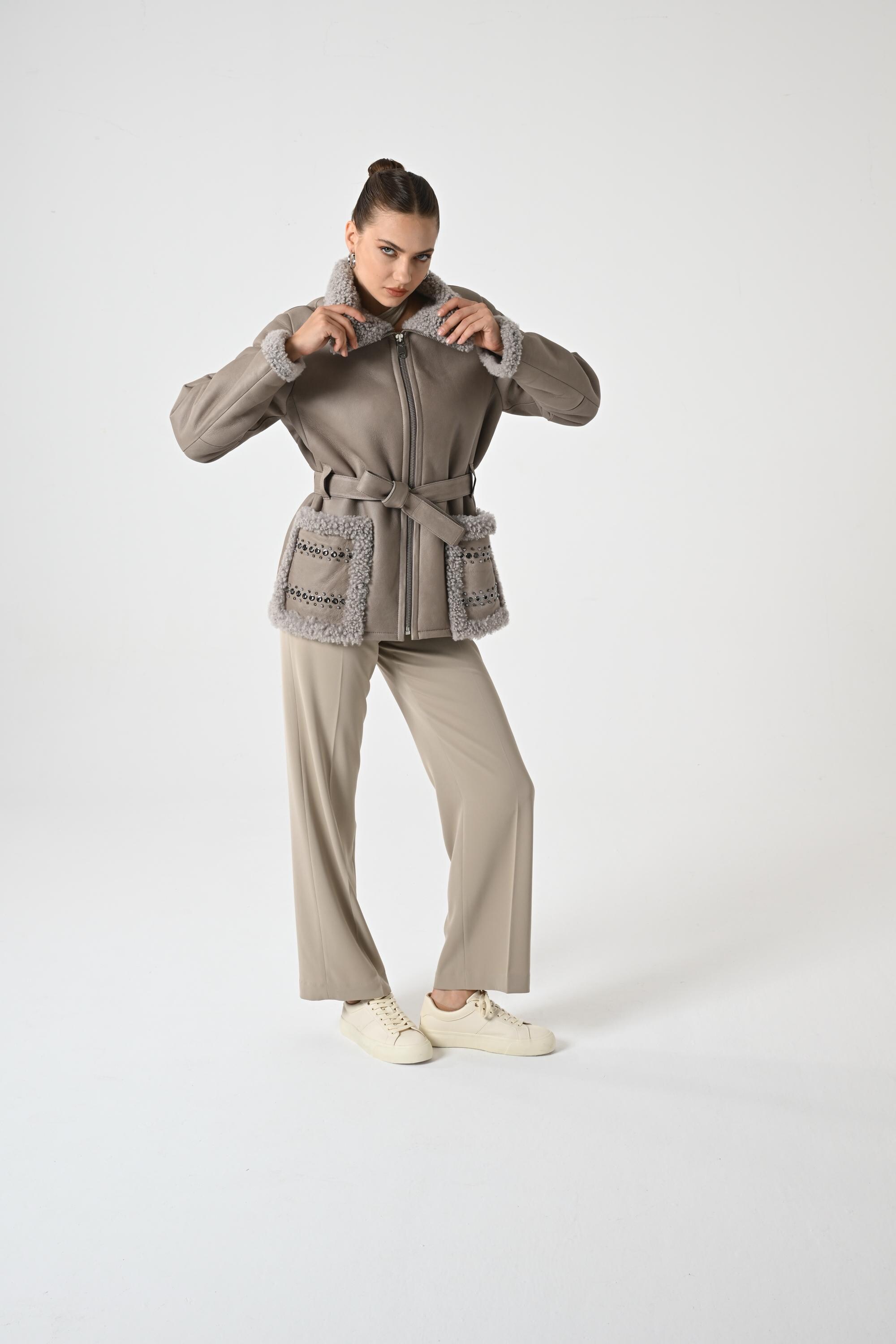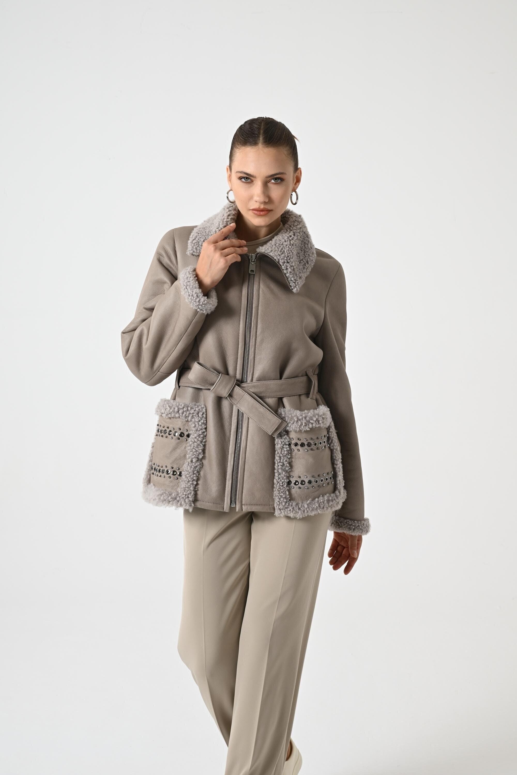 GRAY WOMAN JACKET | Gray Women Teddy Jacket